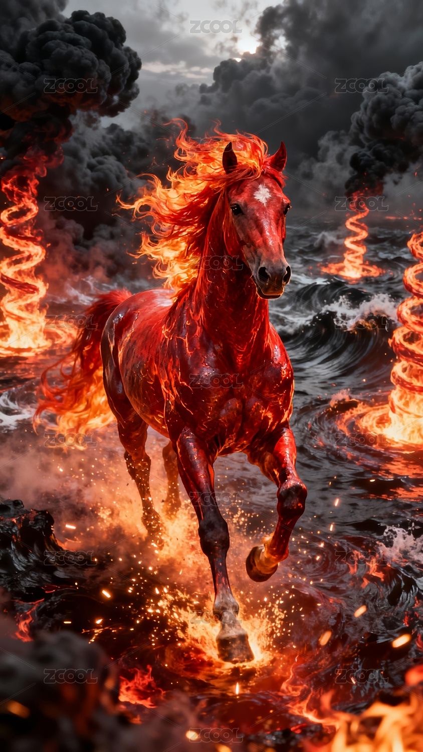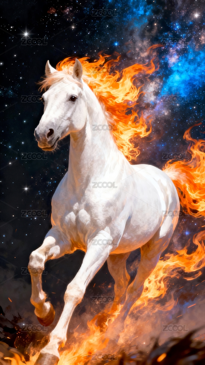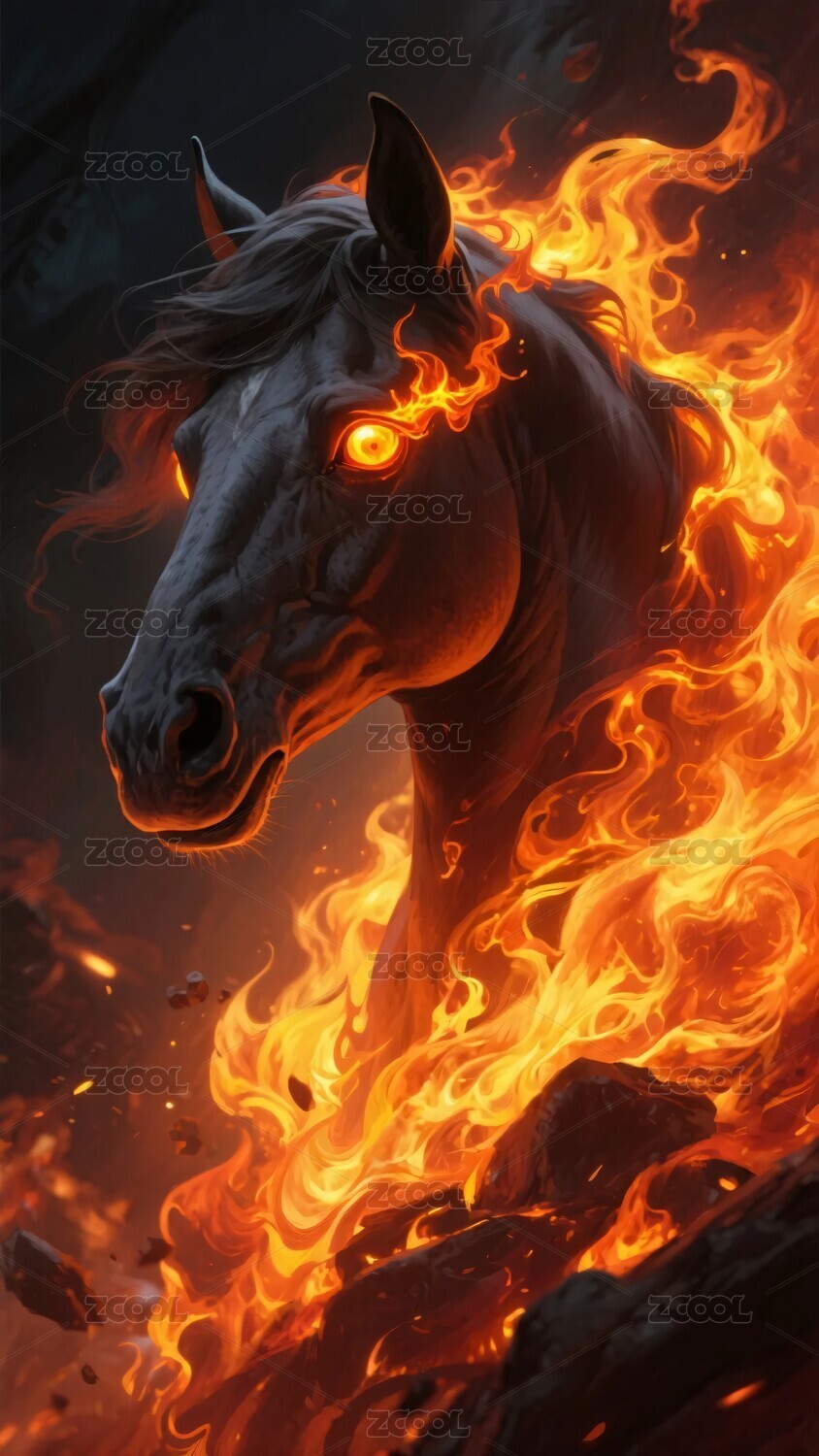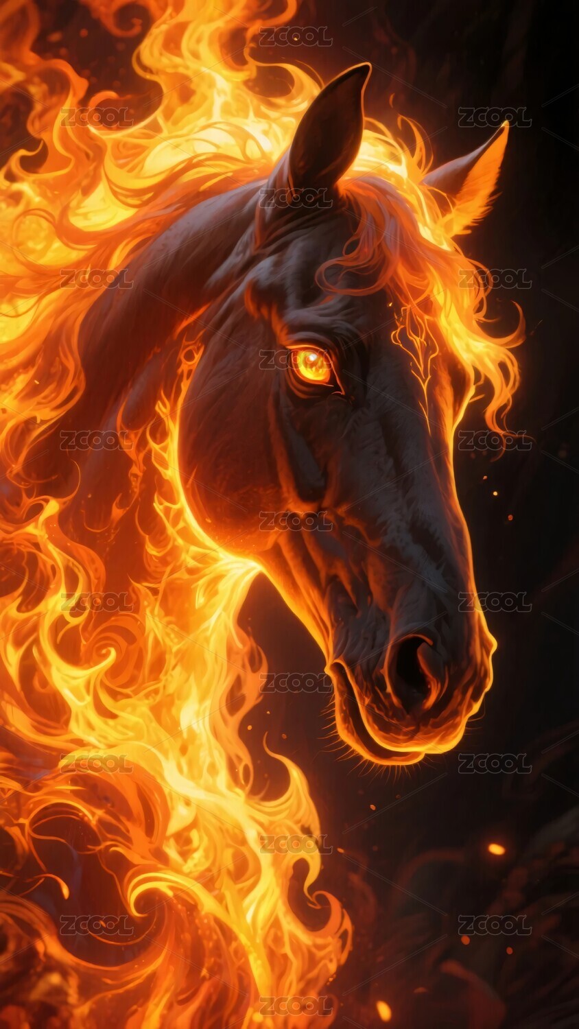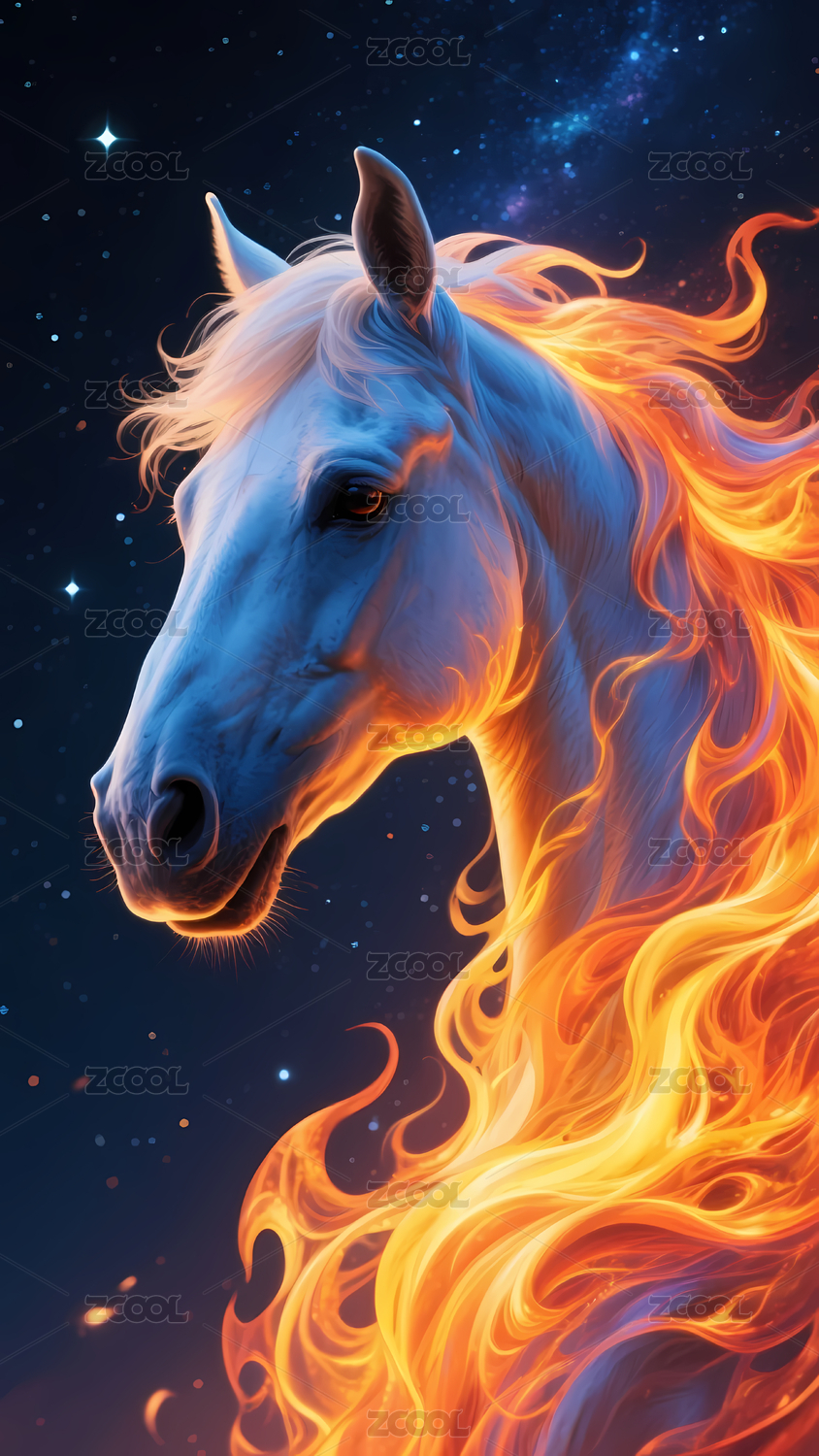 马年,神马,烈焰,鬃毛,火焰,翻腾,头部,颈部,昂首,挺立