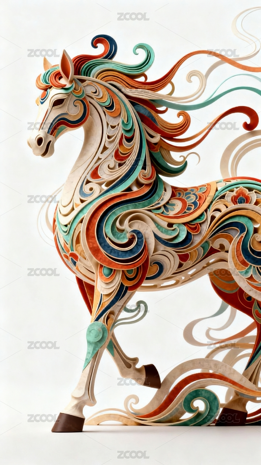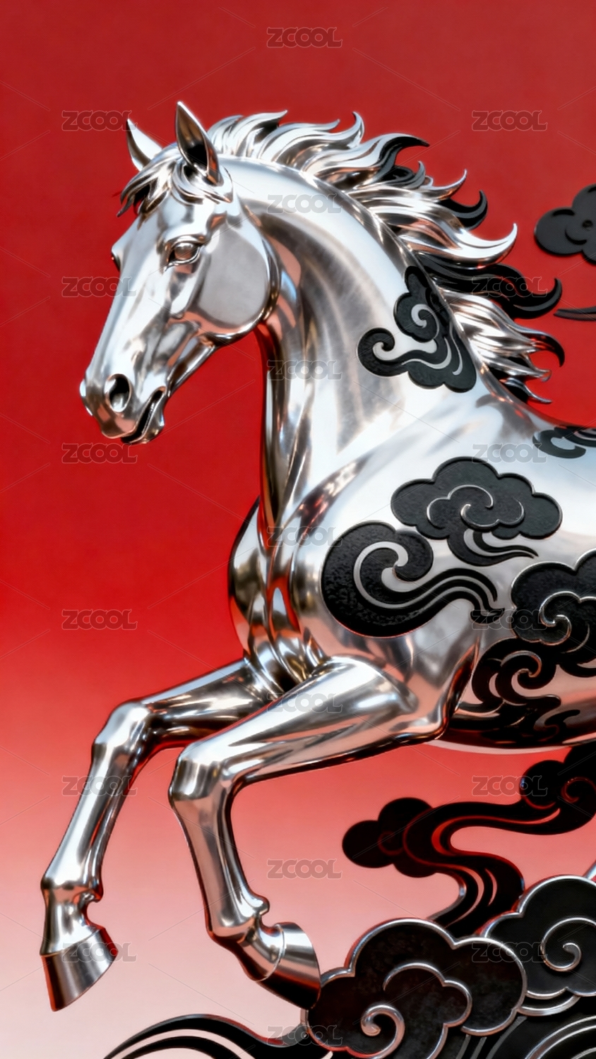马年,红马,雕塑,昂首,扬蹄,矫健,动感,蓝色,火焰,花纹