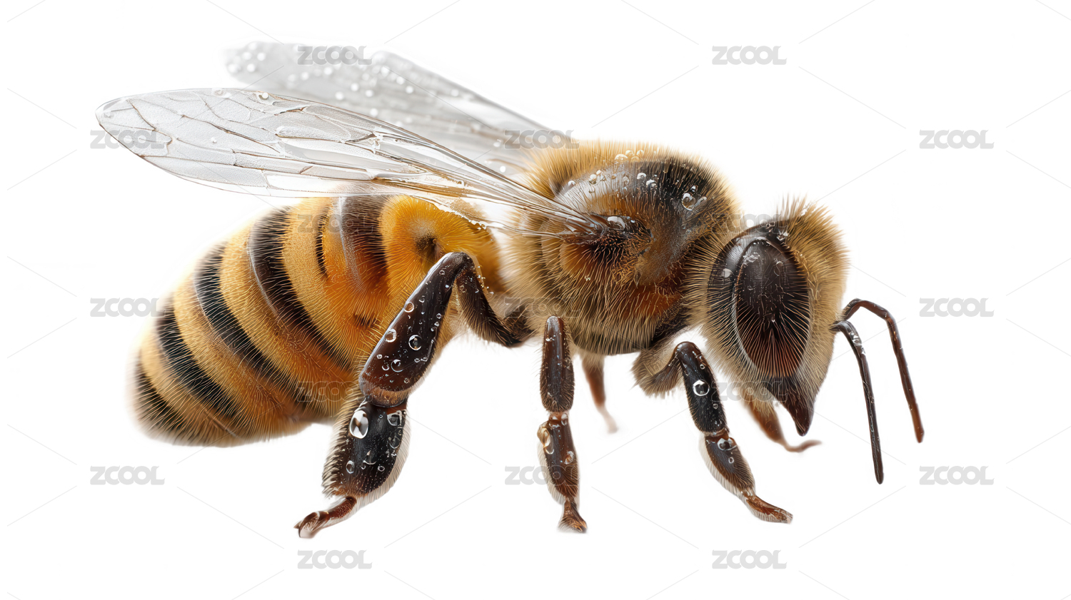 白底,元素,特写,黄色,自然,条纹,蜜蜂,昆虫,传粉者,翅膀