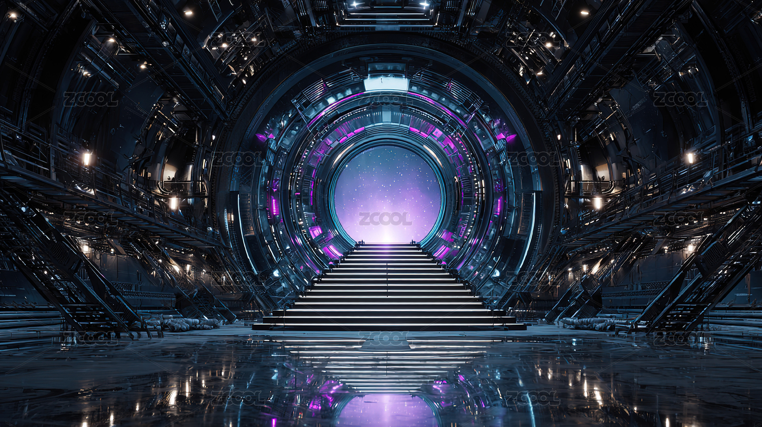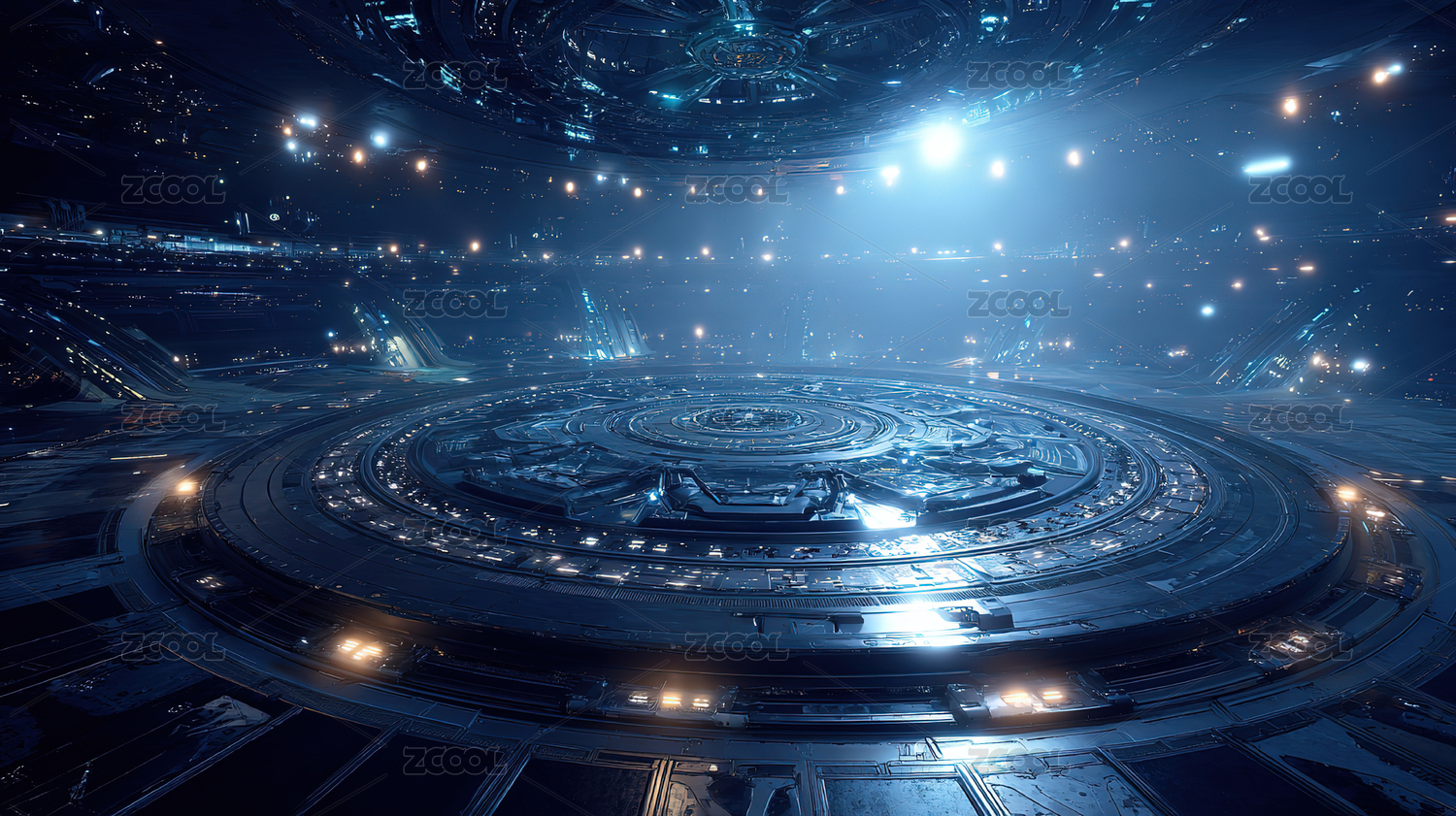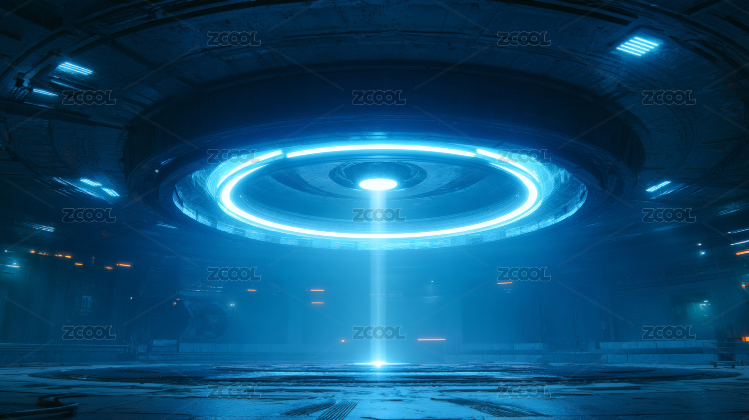 金属,科技,灯光,科幻,飞船,内部,圆形,天花板,地板,光束