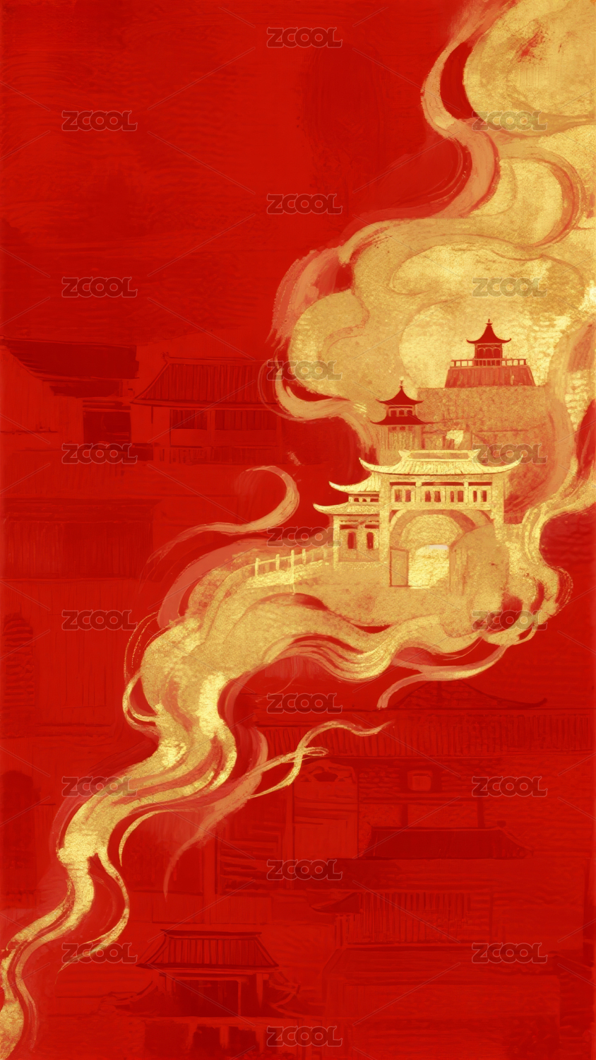 金色祥云红底
