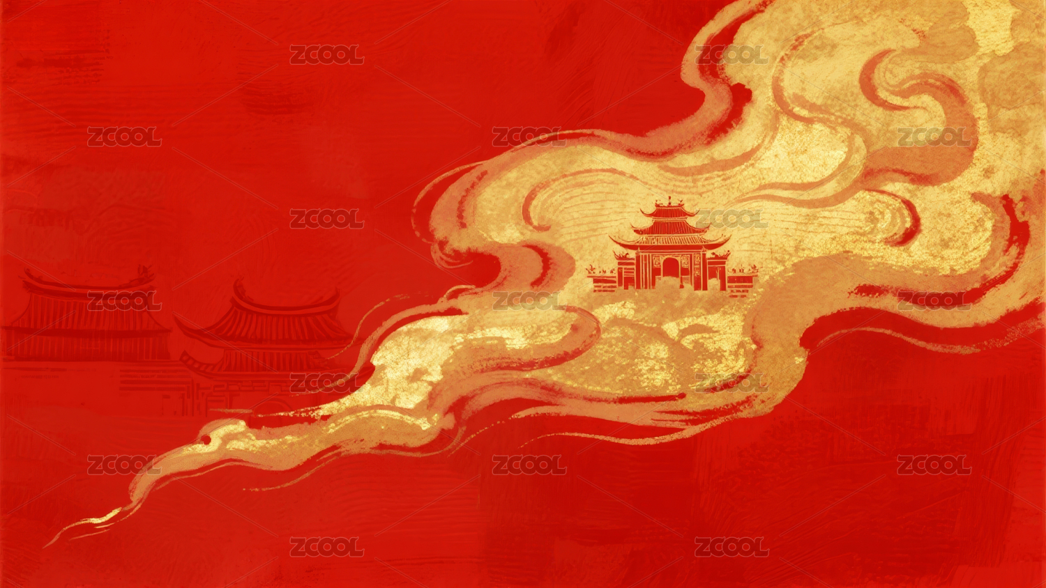 金色, 祥云, 红色, 背景, 传统, 图案, 艺术, 装饰, 中国风, 文化