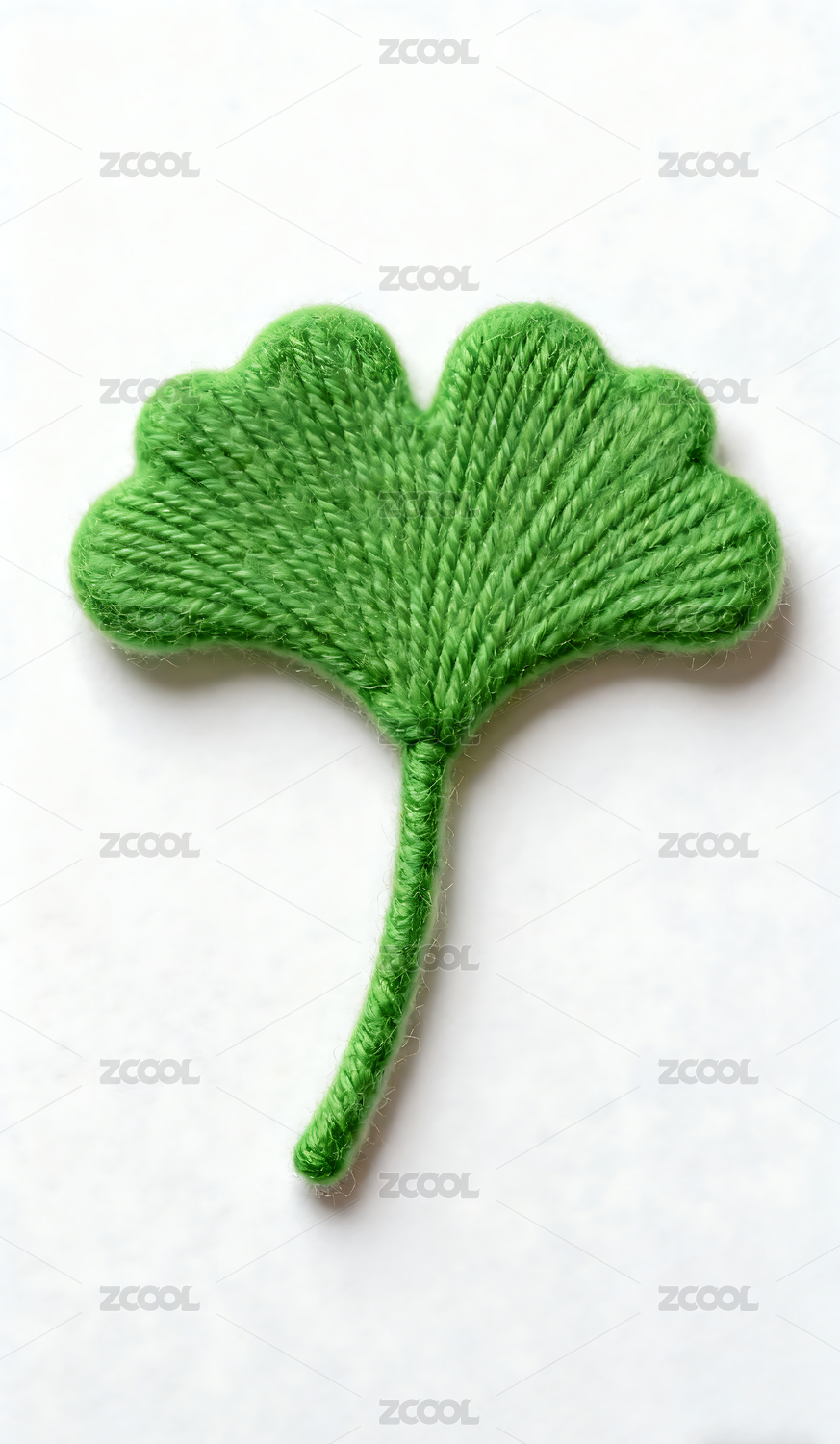 3D羊毛毡毛绒绒质感绿色银杏树叶模型