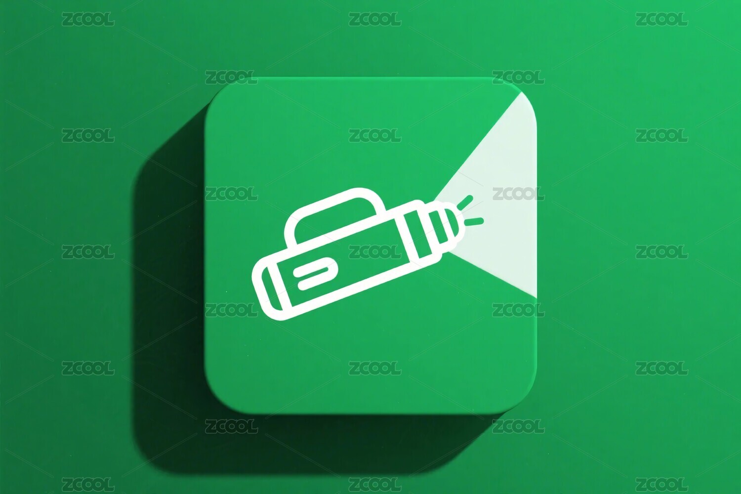 手电筒,绿色,方形,图标,插画,模板,平面设计,扁平,按钮,设计
