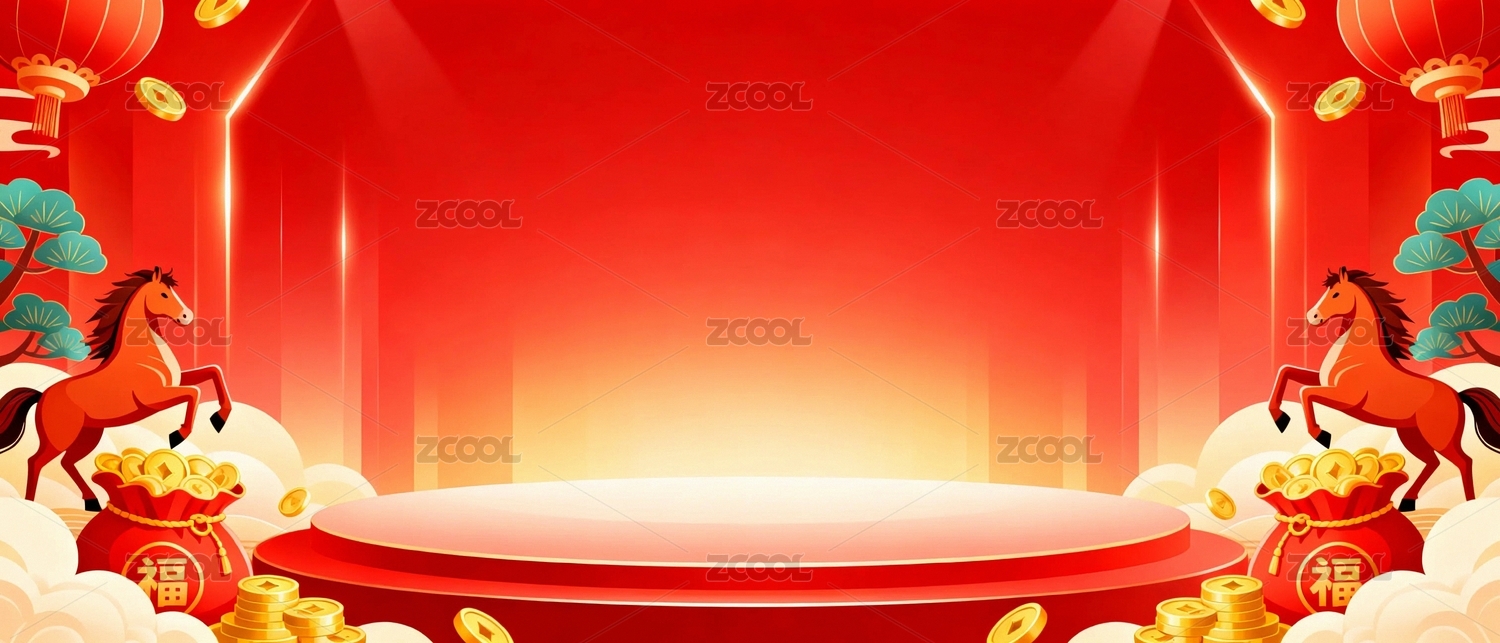 马年,新年,节日,红色,春节,骏马,电商,福袋,金币,年货节