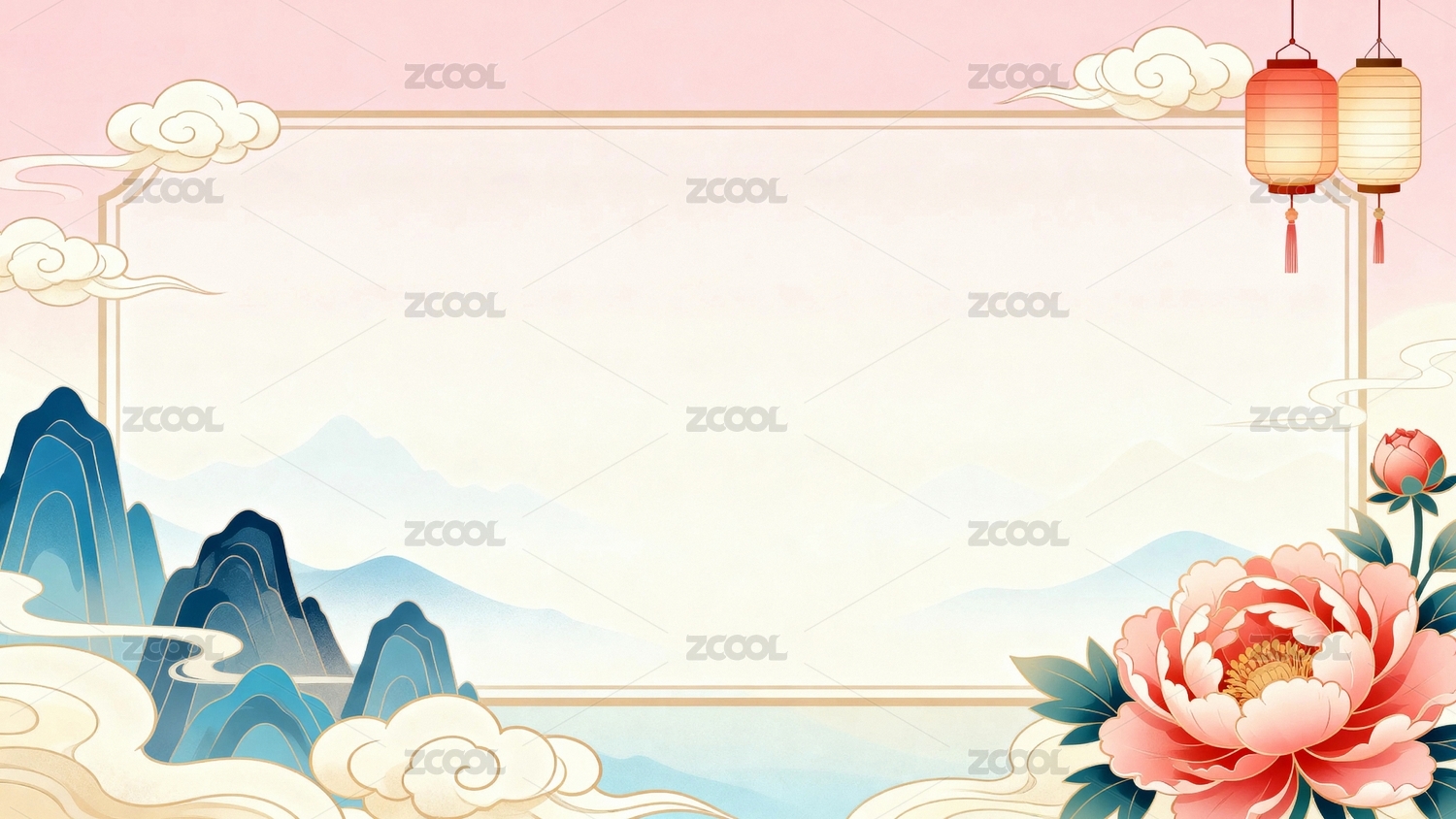 国潮,山水,中国风,背景,喜庆,节日,灯笼,新中式,祝福,购物