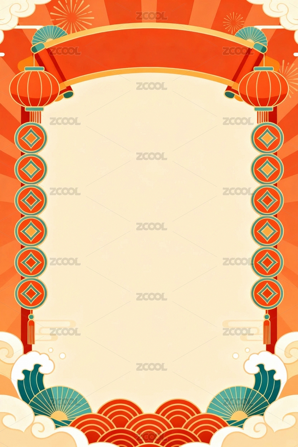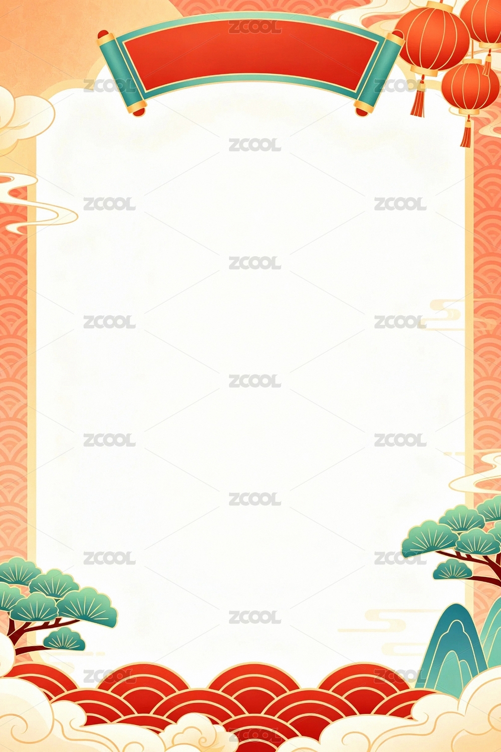 国潮,山水,中国风,背景,喜庆,节日,灯笼,新中式,祝福,购物