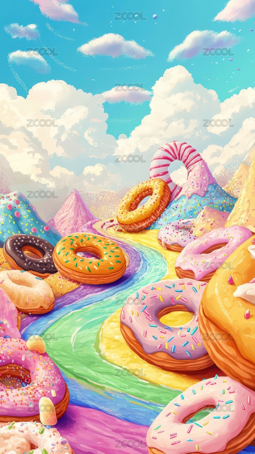 甜甜圈,甜点,卡通,可爱,彩糖,插画,黑底,食物,图案,表情