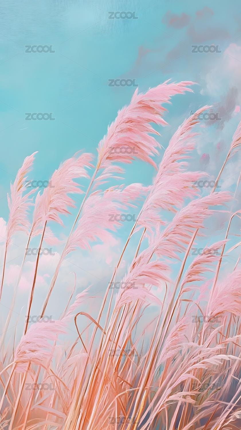 粉红色的蒲苇在夕阳下