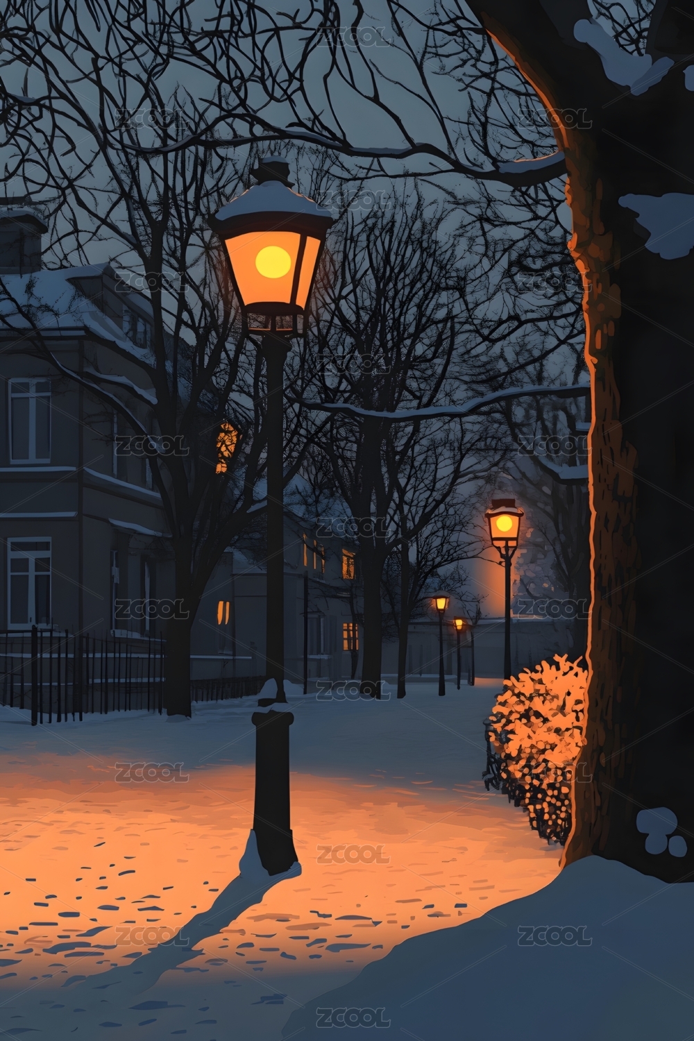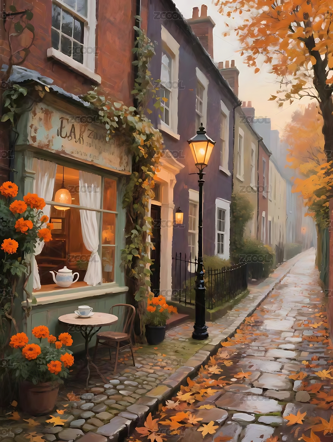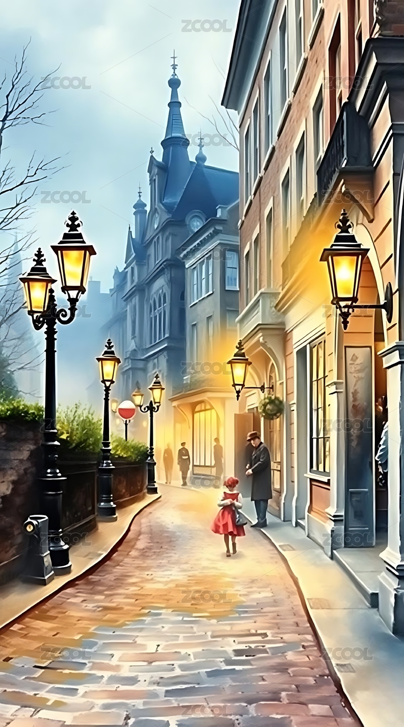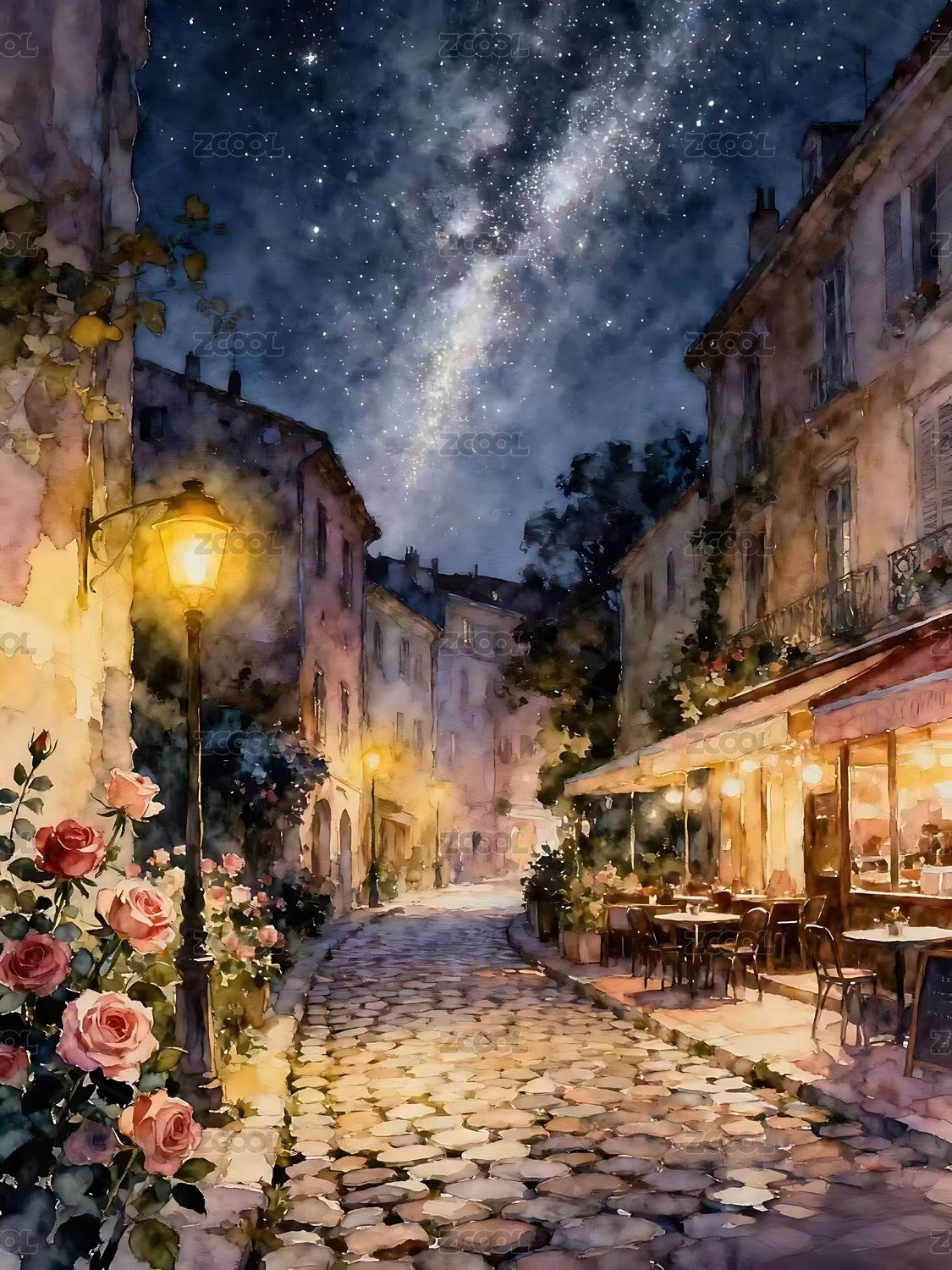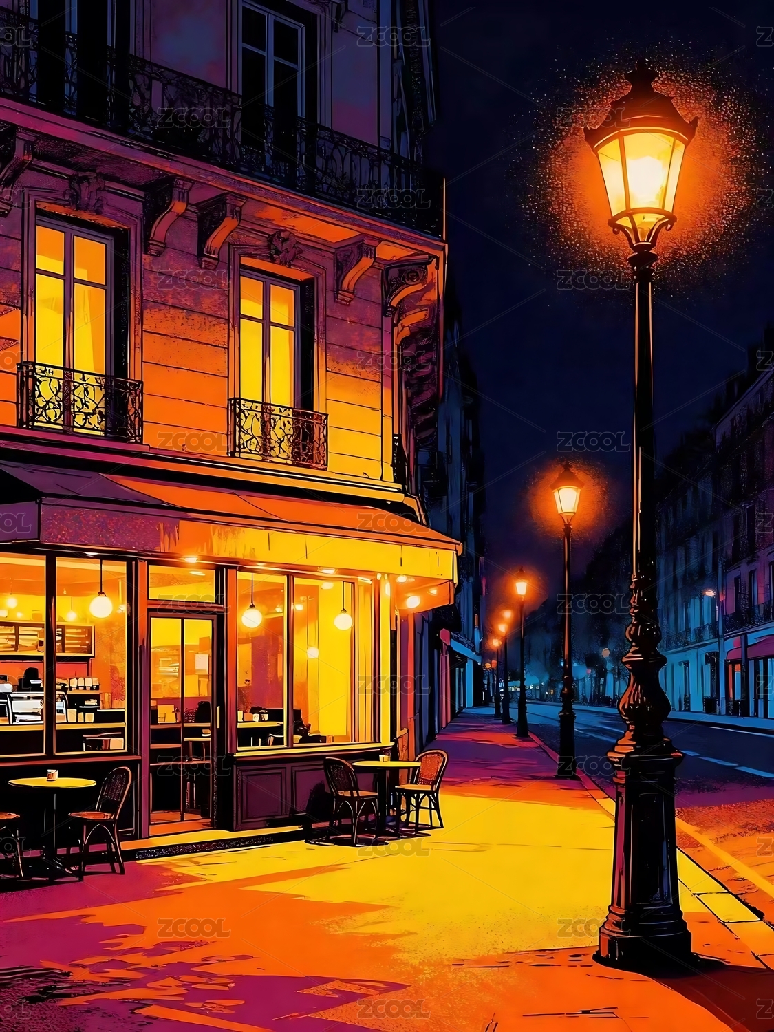 油画,夜景,巴黎,街景,路灯,暖光,咖啡馆,建筑,街角,光影