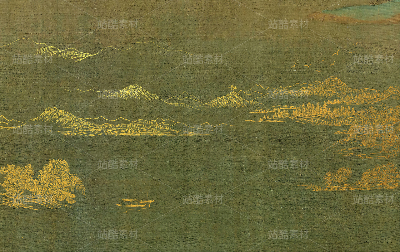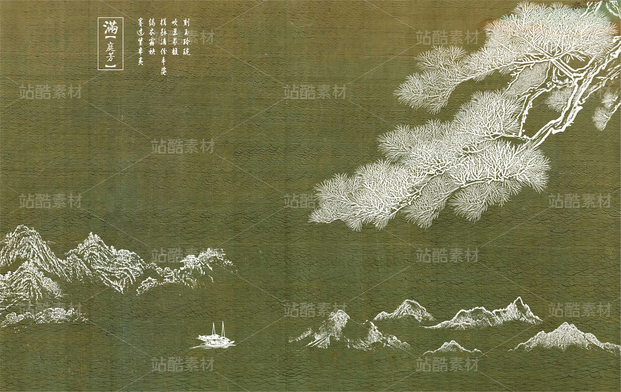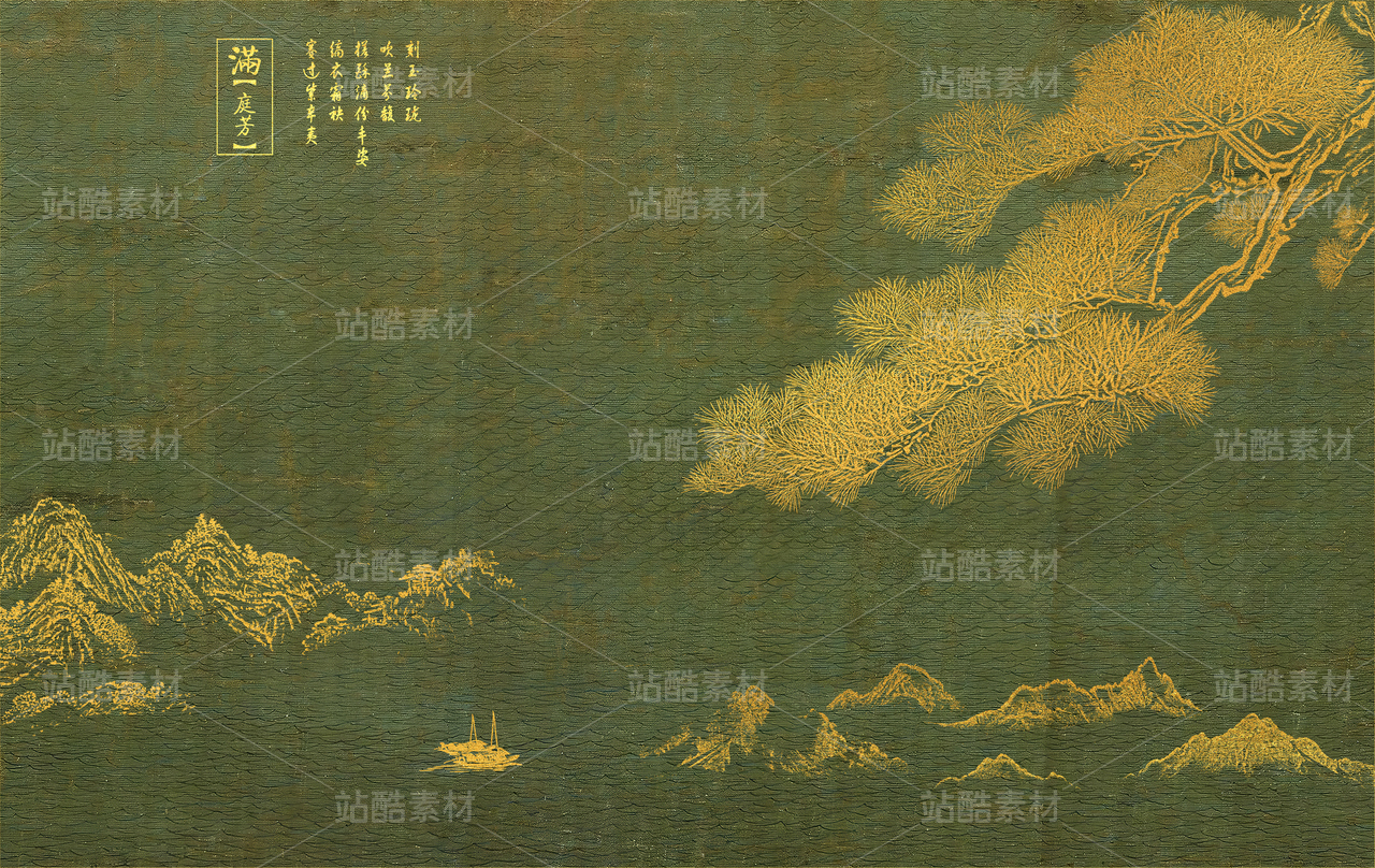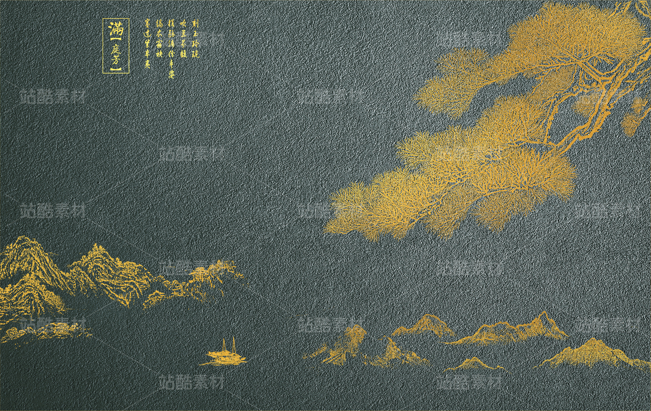 新款高清新款千里江山亭台楼阁新中式山水工装背景墙04