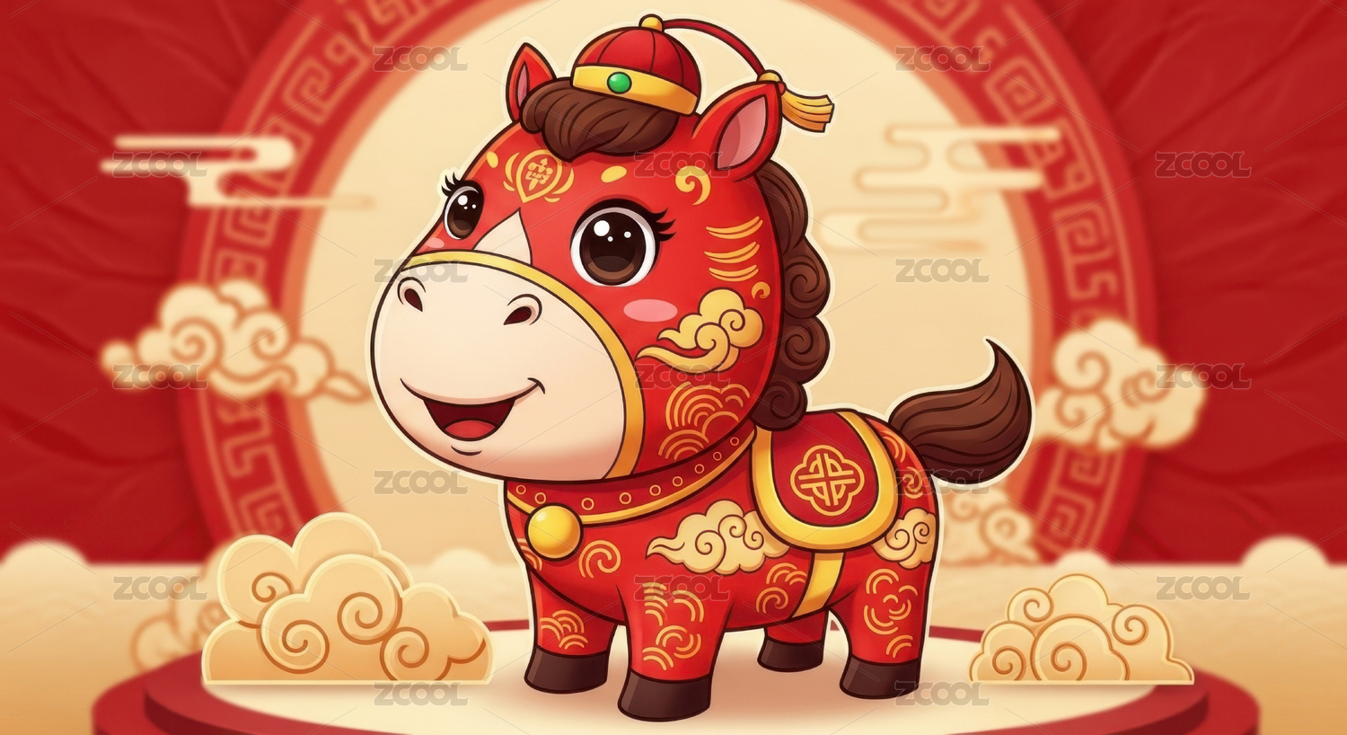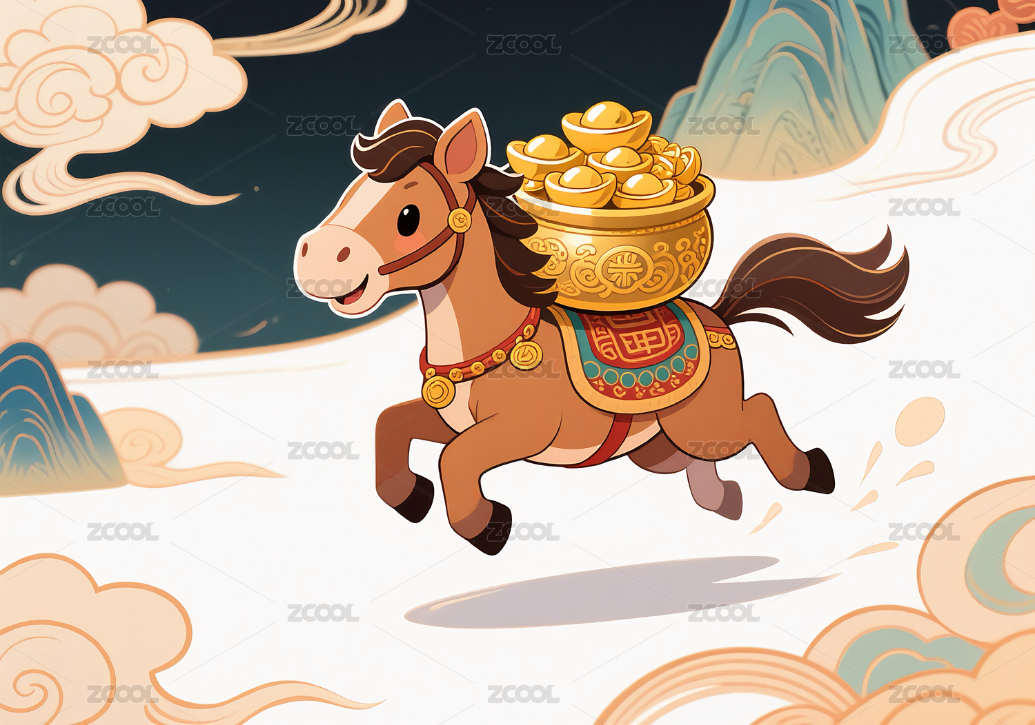红色,装饰,金色,马,浪花,传统,喜庆,新年,福字,祝福