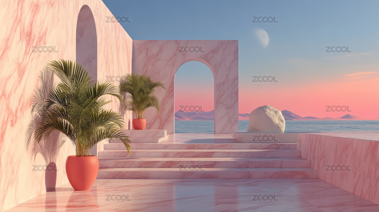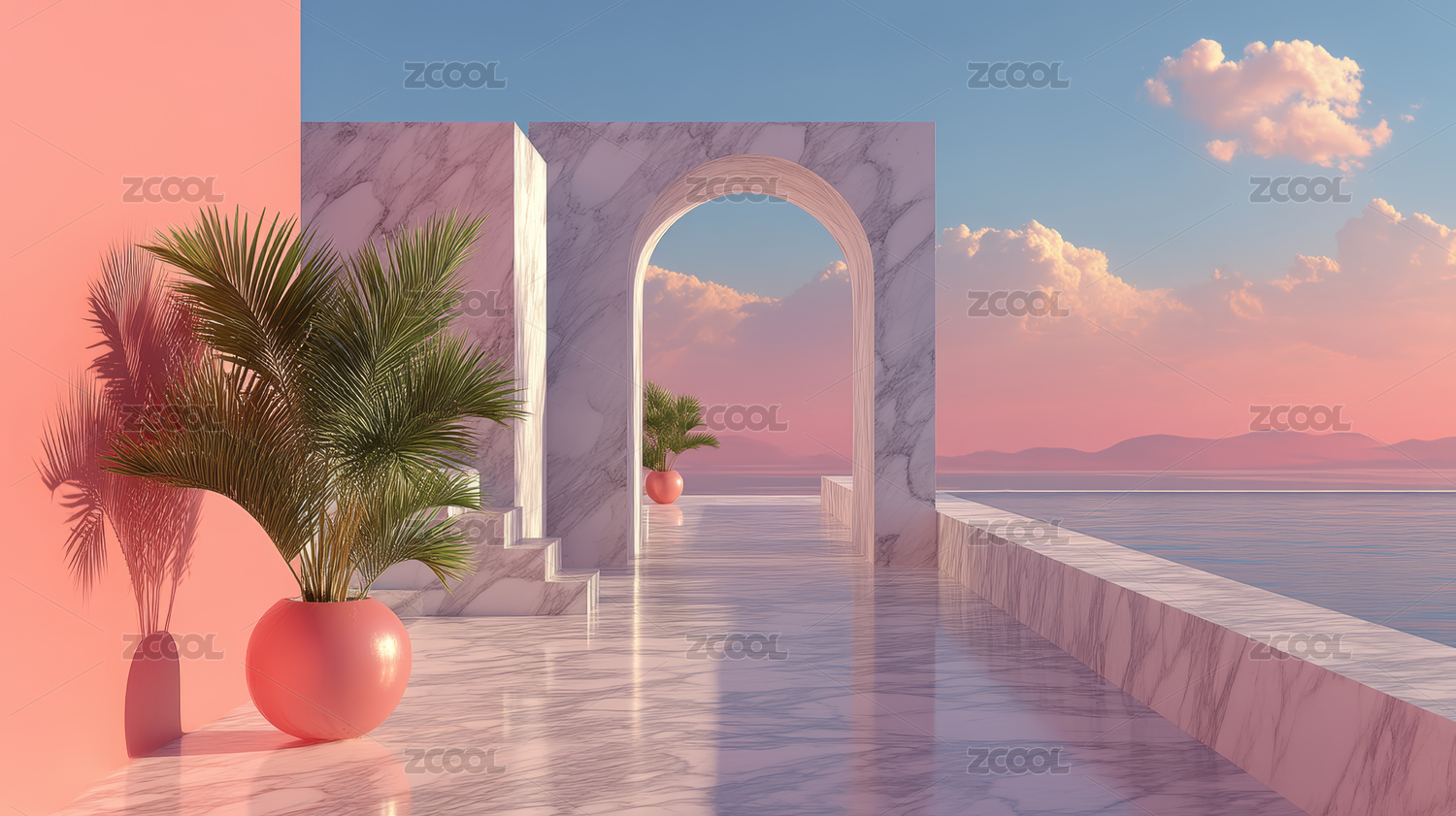 极简,几何,空间,自然,景观,海景,天空,云朵,岩石,树木