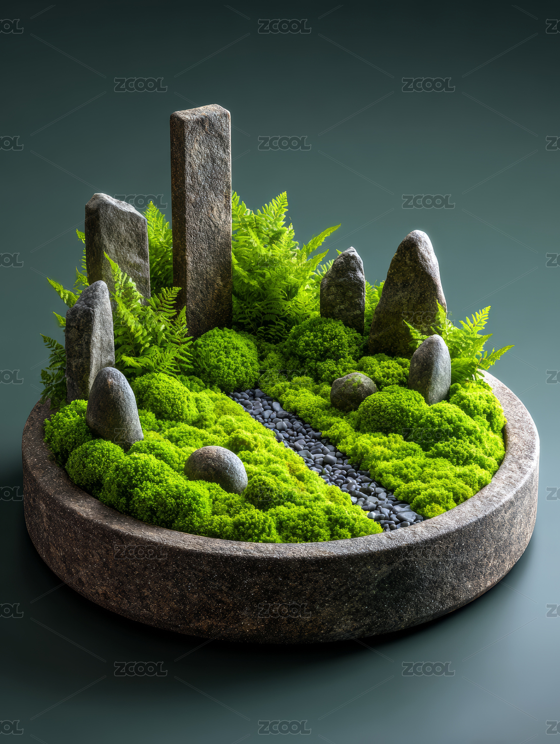 禅意苔藓石景