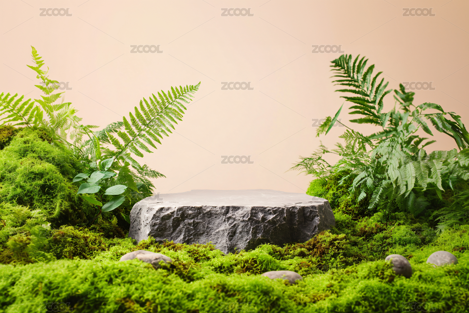 产品展示植物和石头元素展示台背景