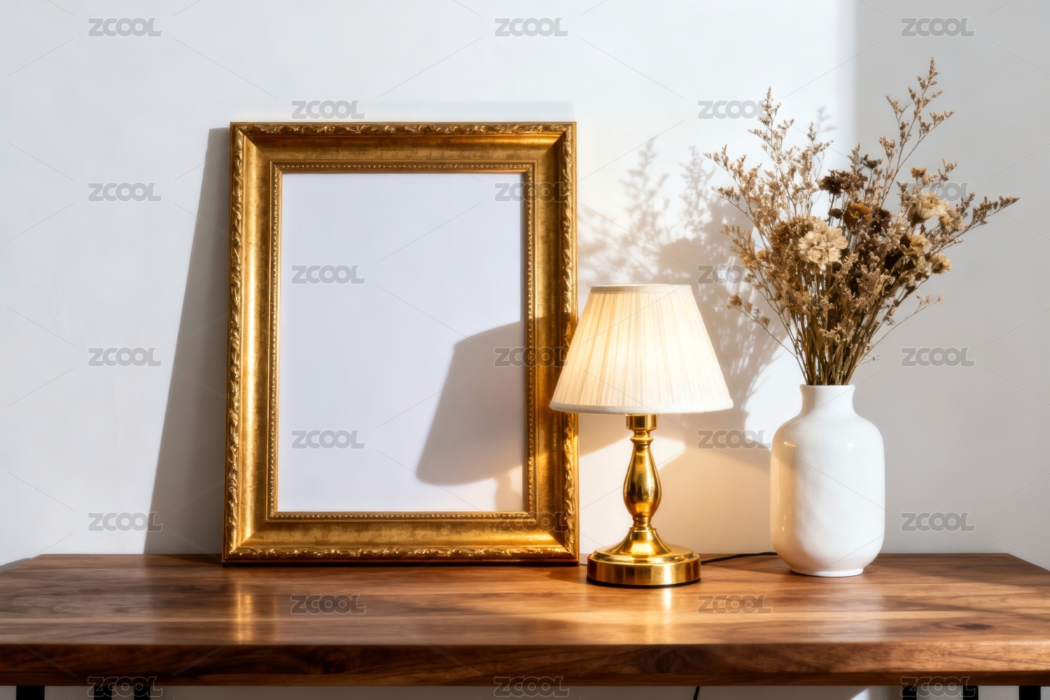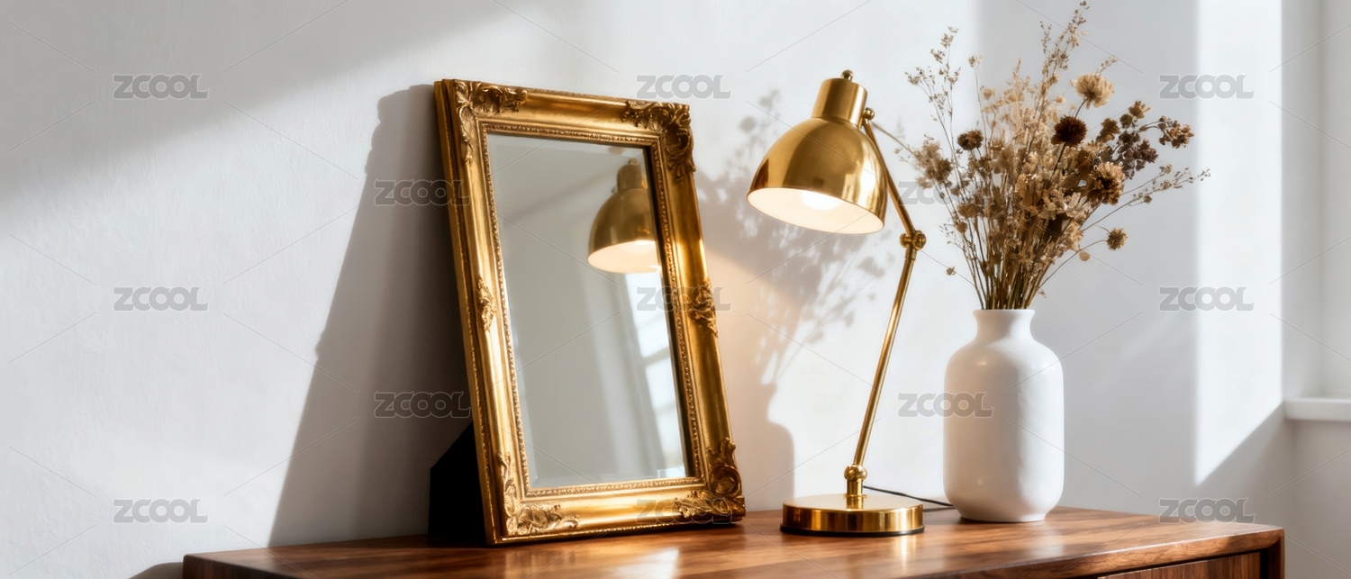 简约相框书桌台灯纯色背景商业广告海报壁纸