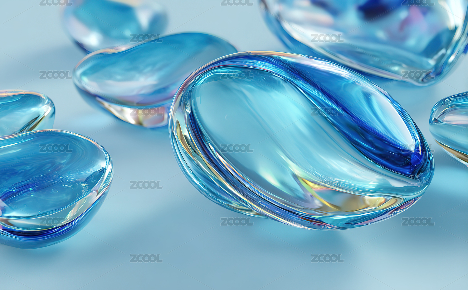 蓝色透明3D玻璃镜片抽象背景