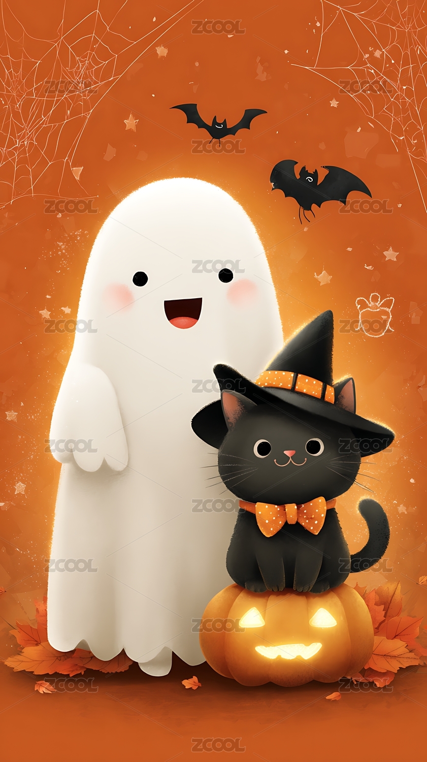 万圣节,素材,插画,幽灵,南瓜,鬼,鬼怪,蝙蝠,恐怖,夜晚