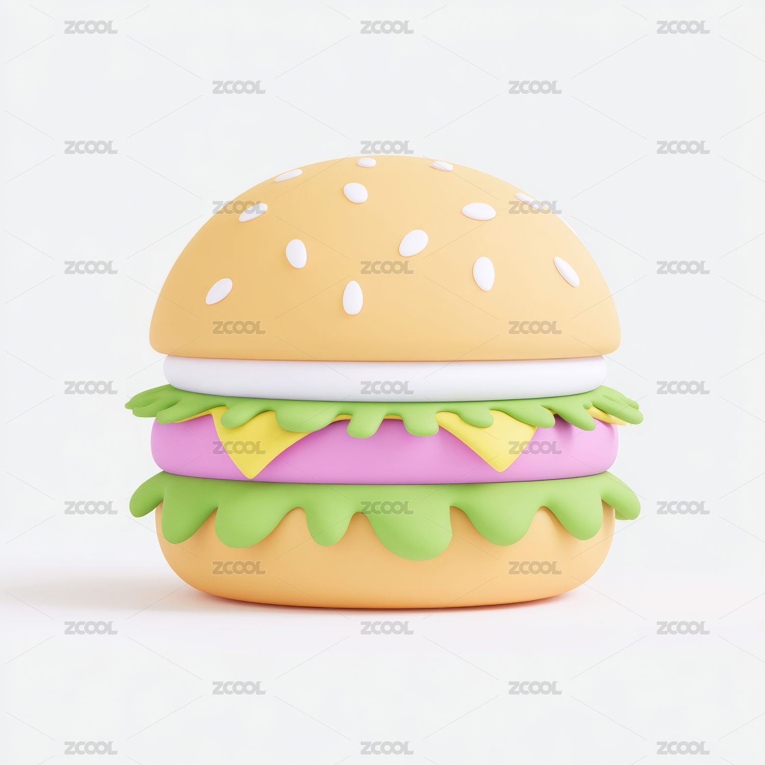 汉堡,卡通,色彩,鲜艳,食物,创意,设计,橙色,紫色,奶酪