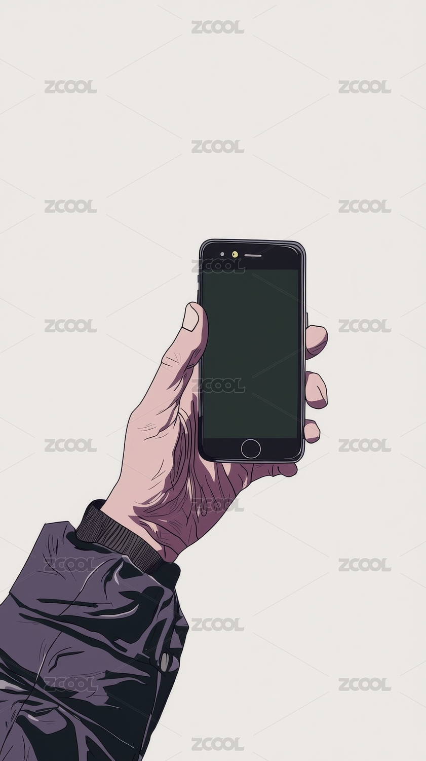 手持智能手机的抽象艺术插画