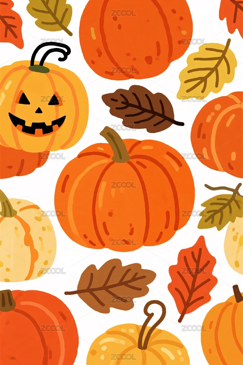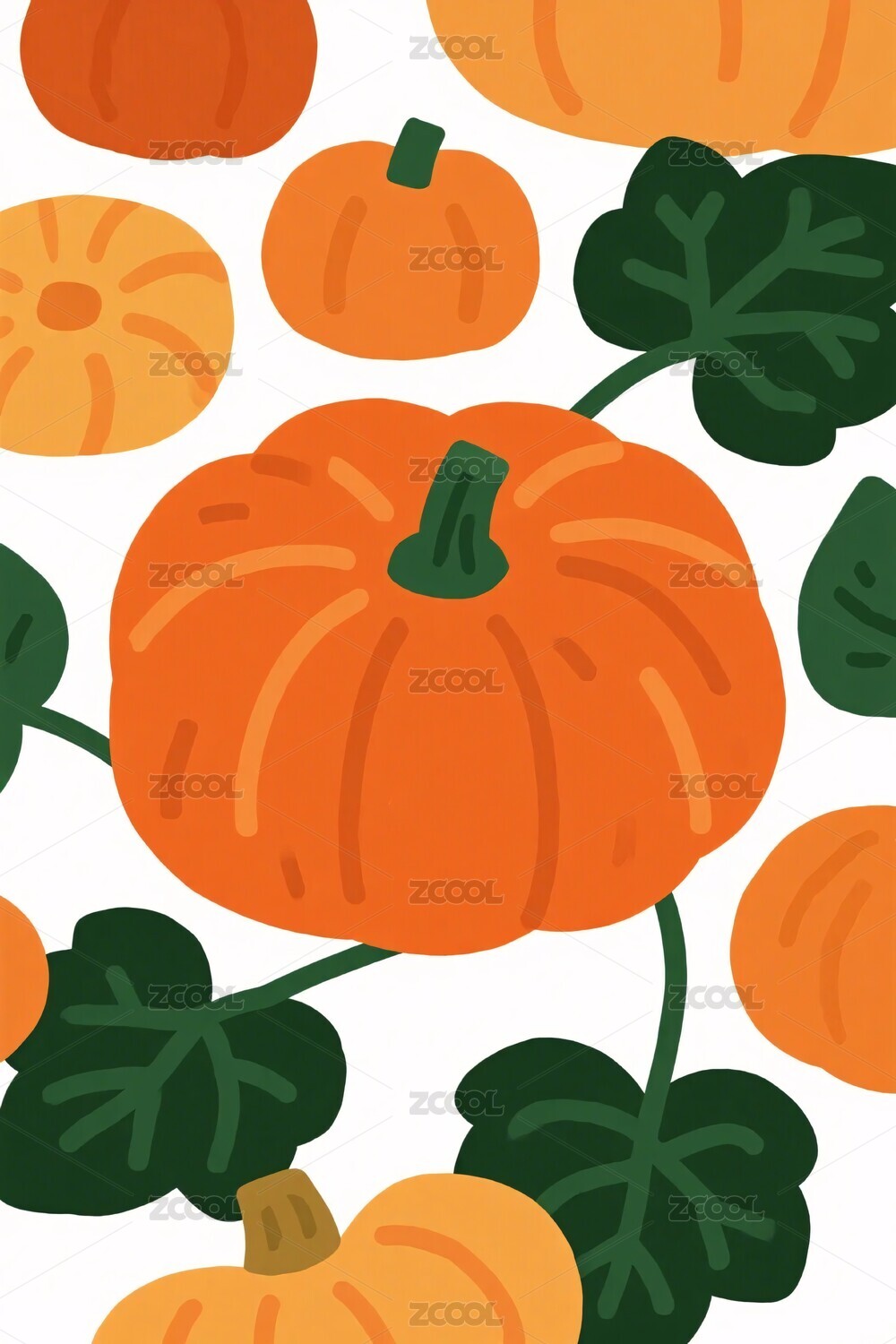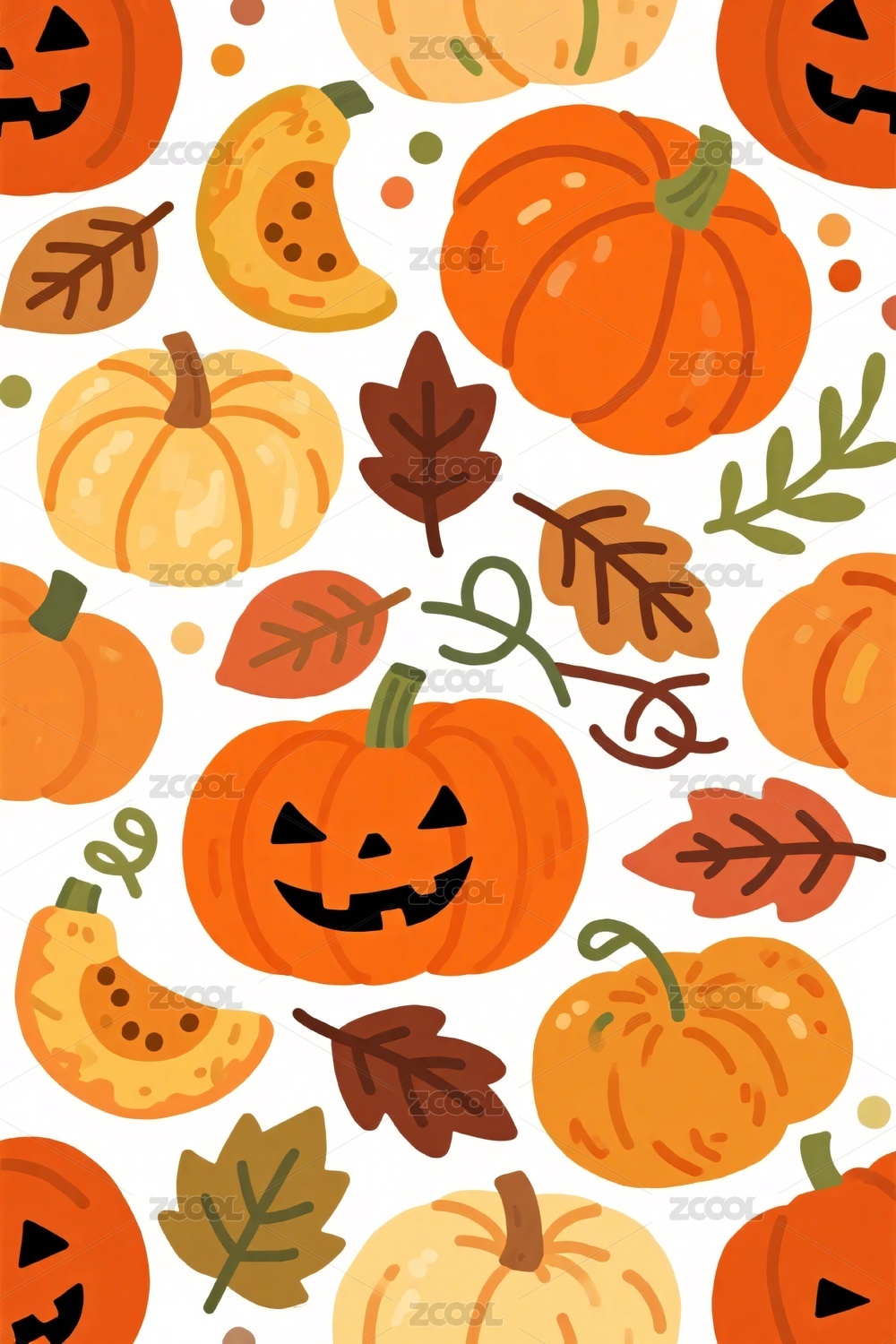 秋天成熟的黄色南瓜四方连续无缝拼接背景