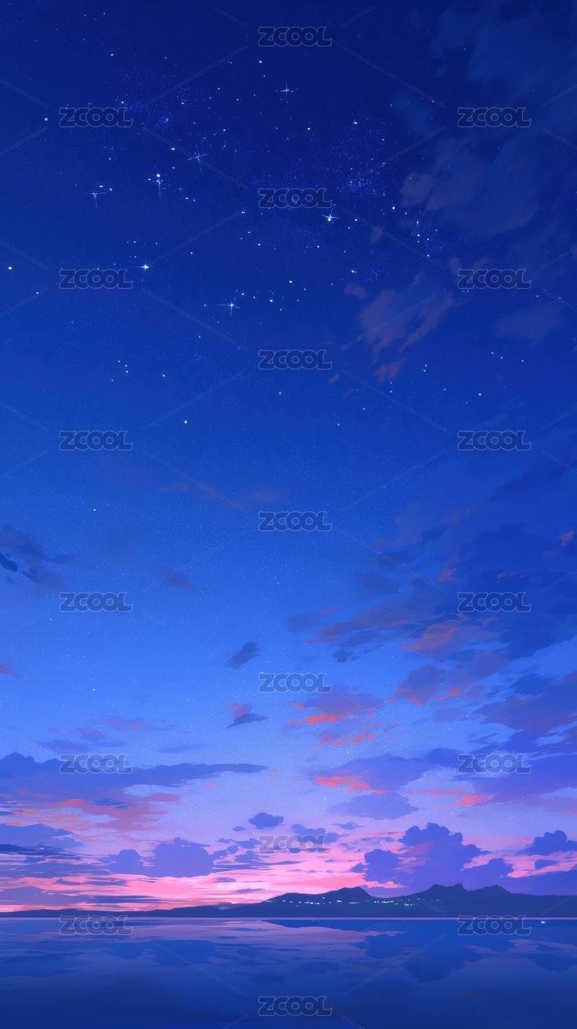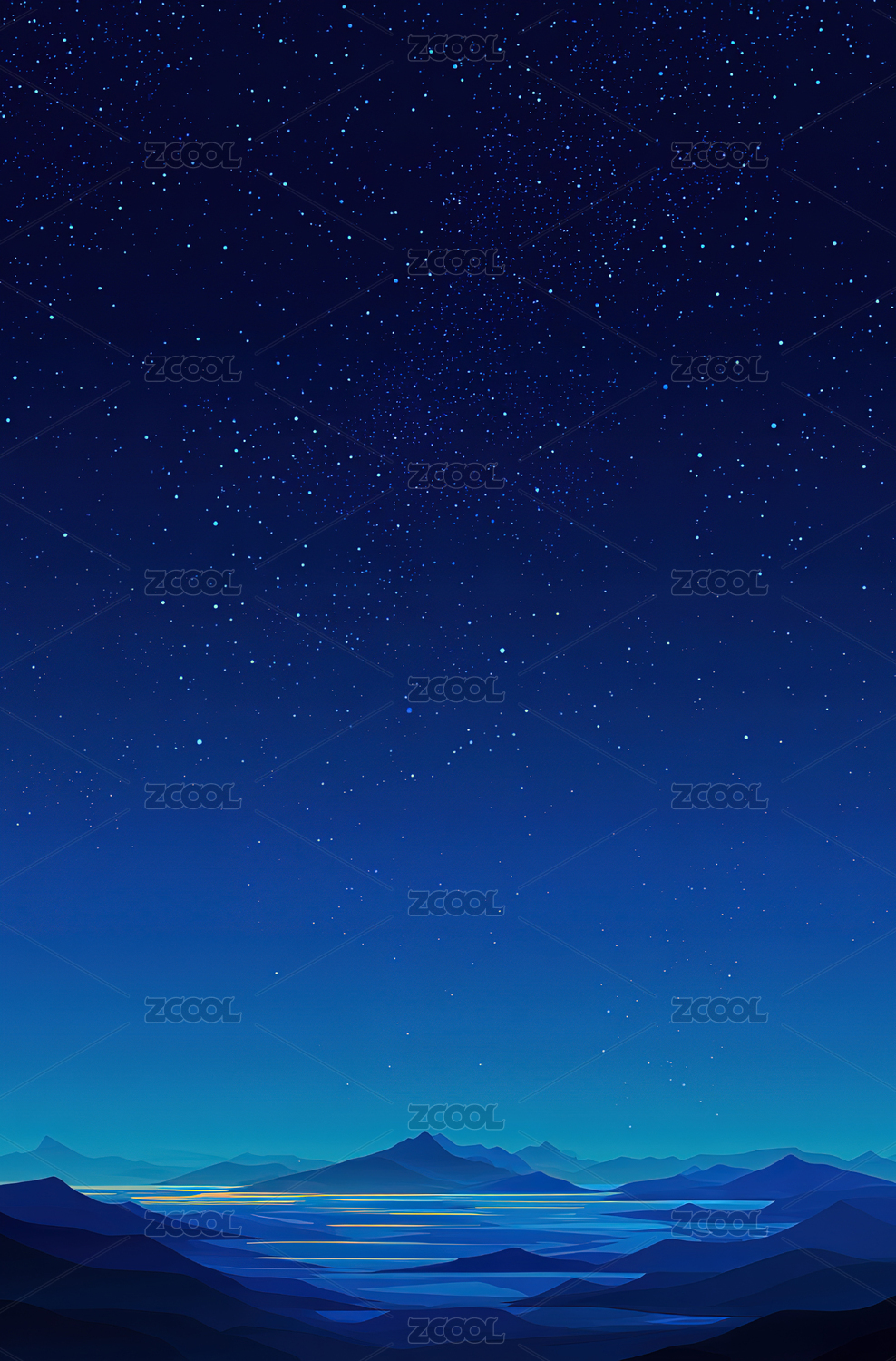 手绘唯美的抽象艺术感夜晚天空风景插画