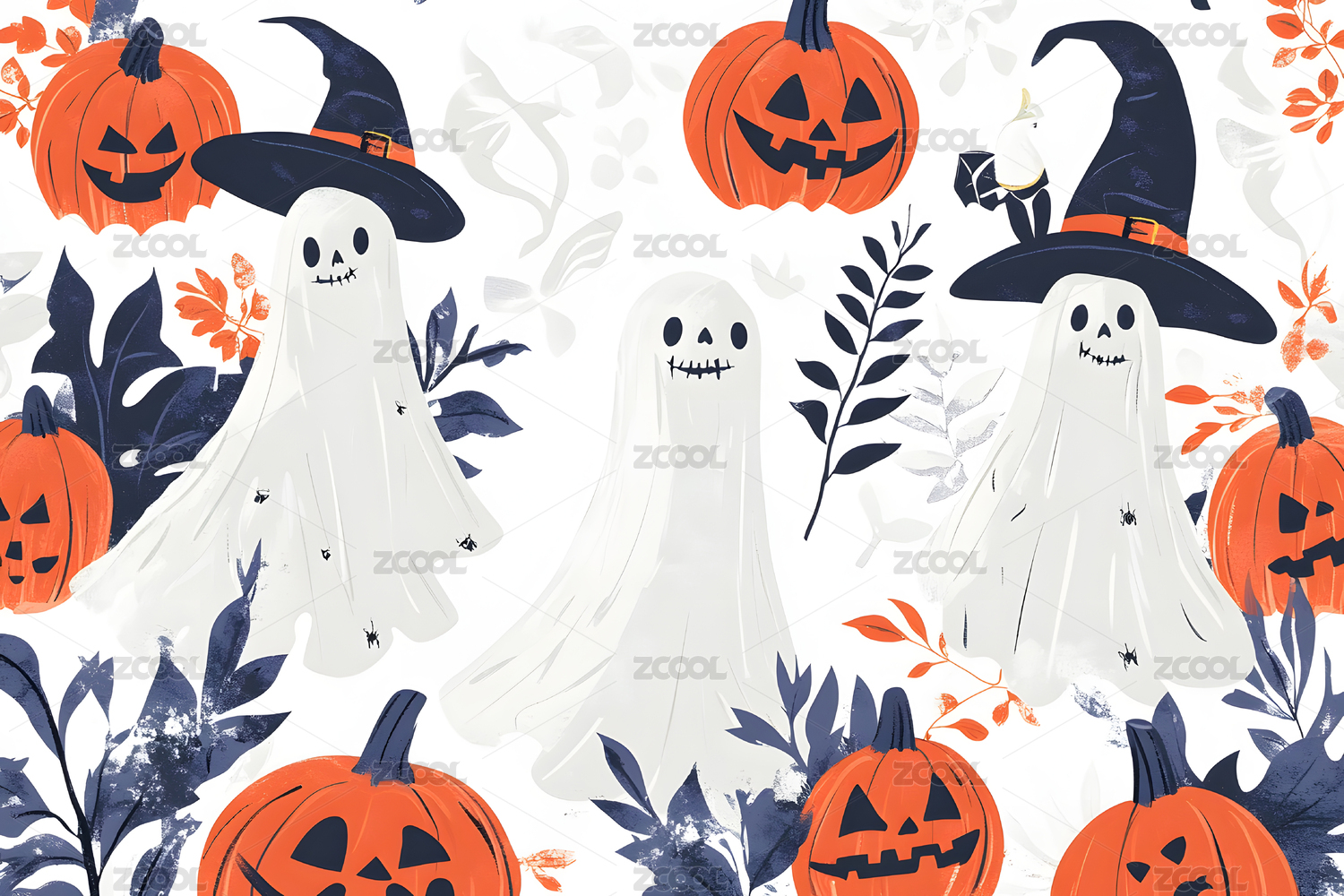 万圣节,素材,插画,幽灵,南瓜,鬼,鬼怪,蝙蝠,恐怖,夜晚