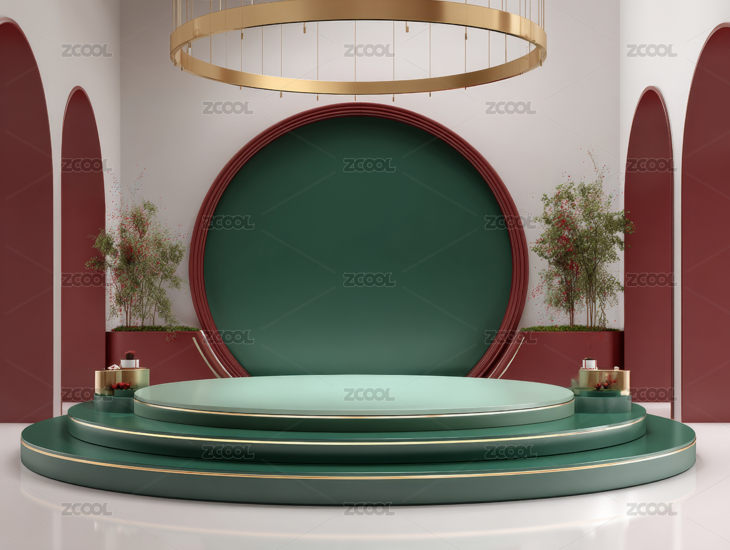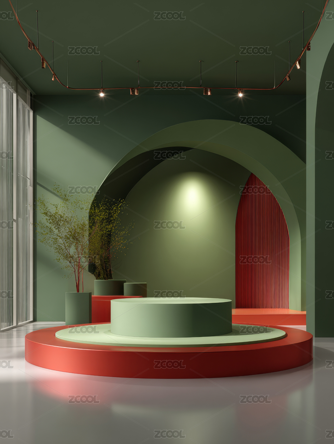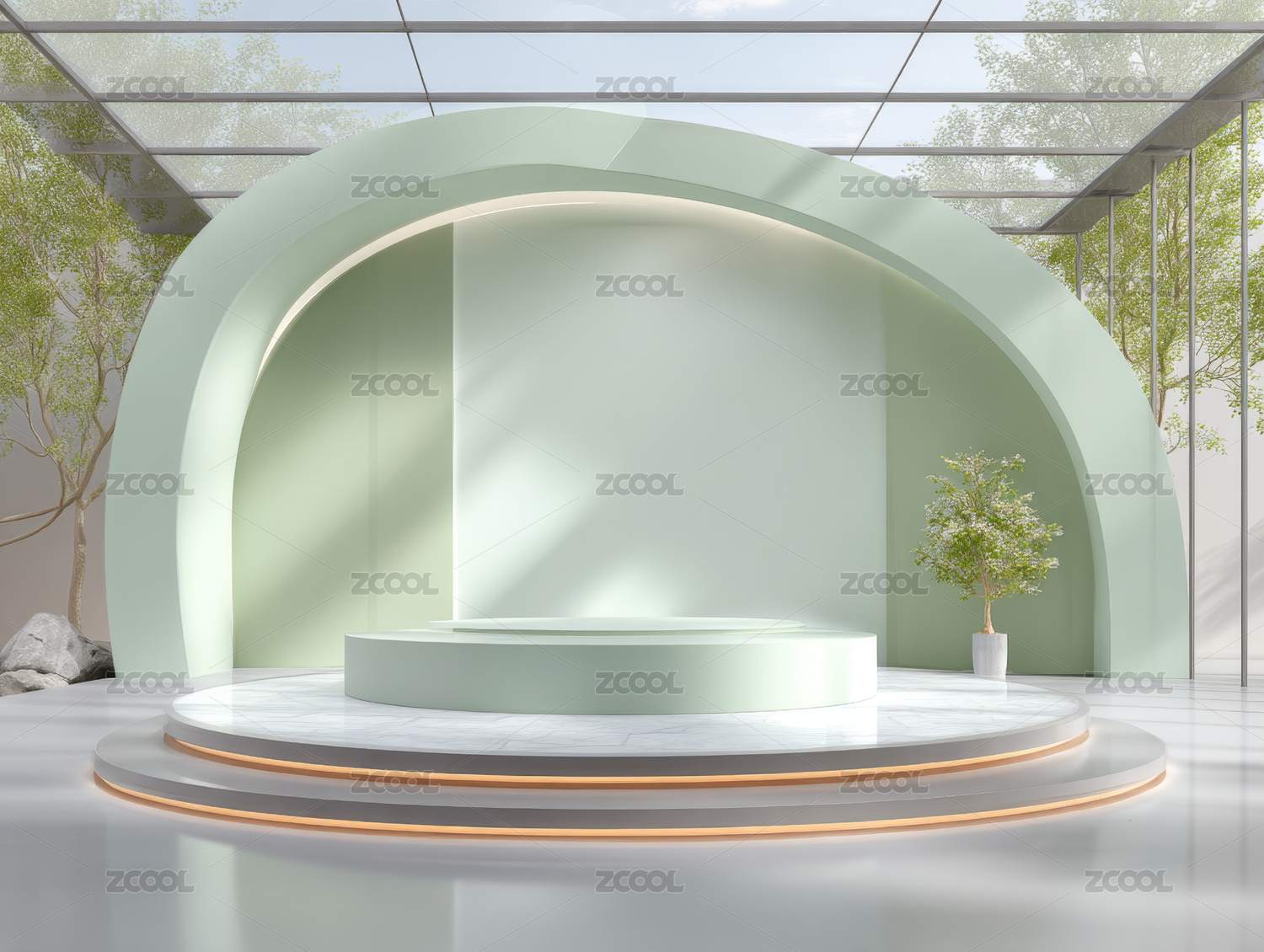 绿色,圆形,舞台,拱门,室内,灯光,植物,设计,现代,简洁
