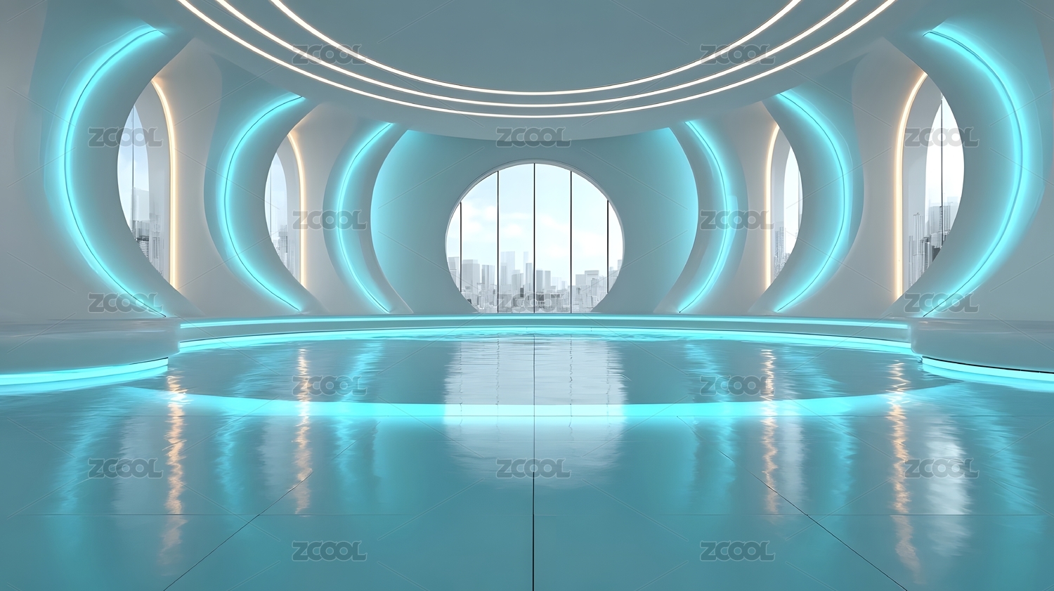 未来,科技,舞台,圆形,灯光,玻璃,建筑,室内,现代