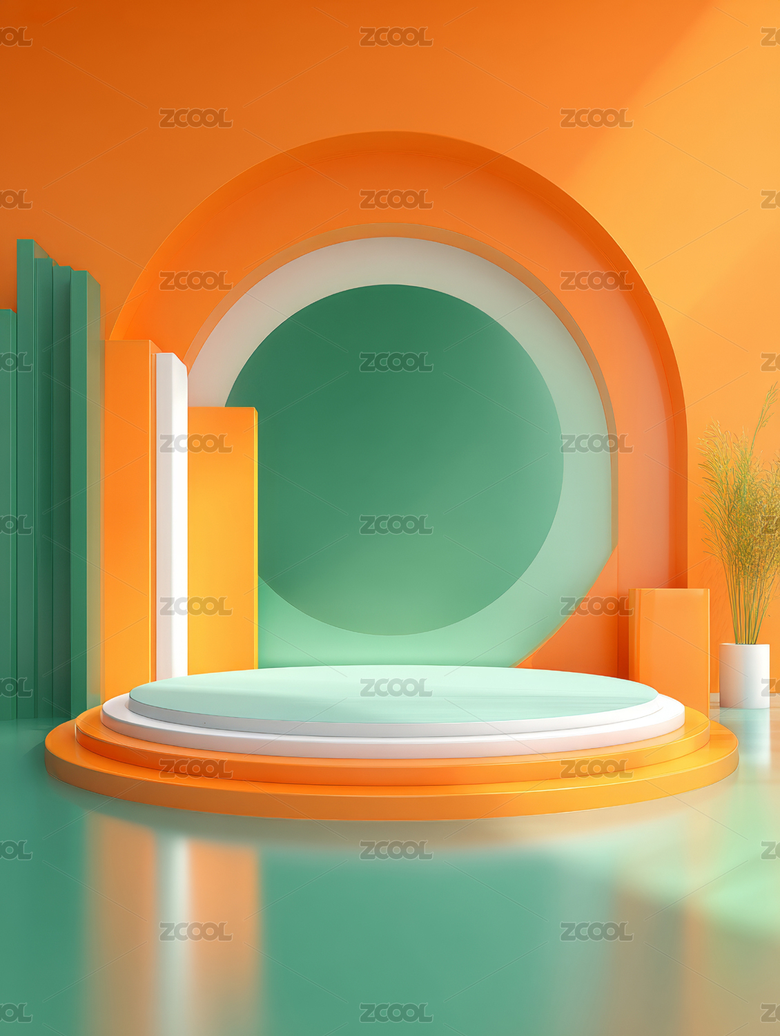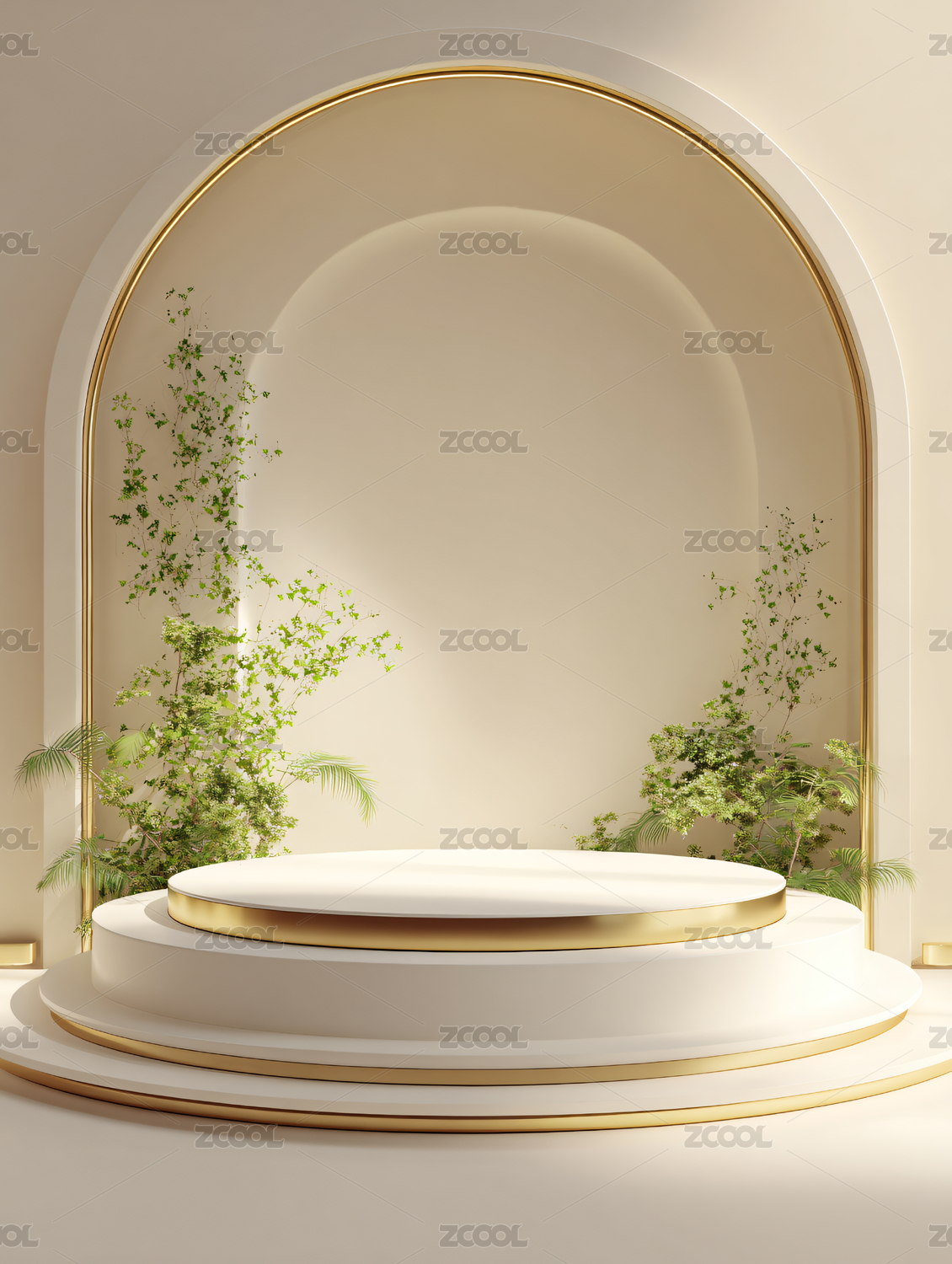展示台,圆形,设计,绿色,背景,金色,装饰,植物,光影,效果