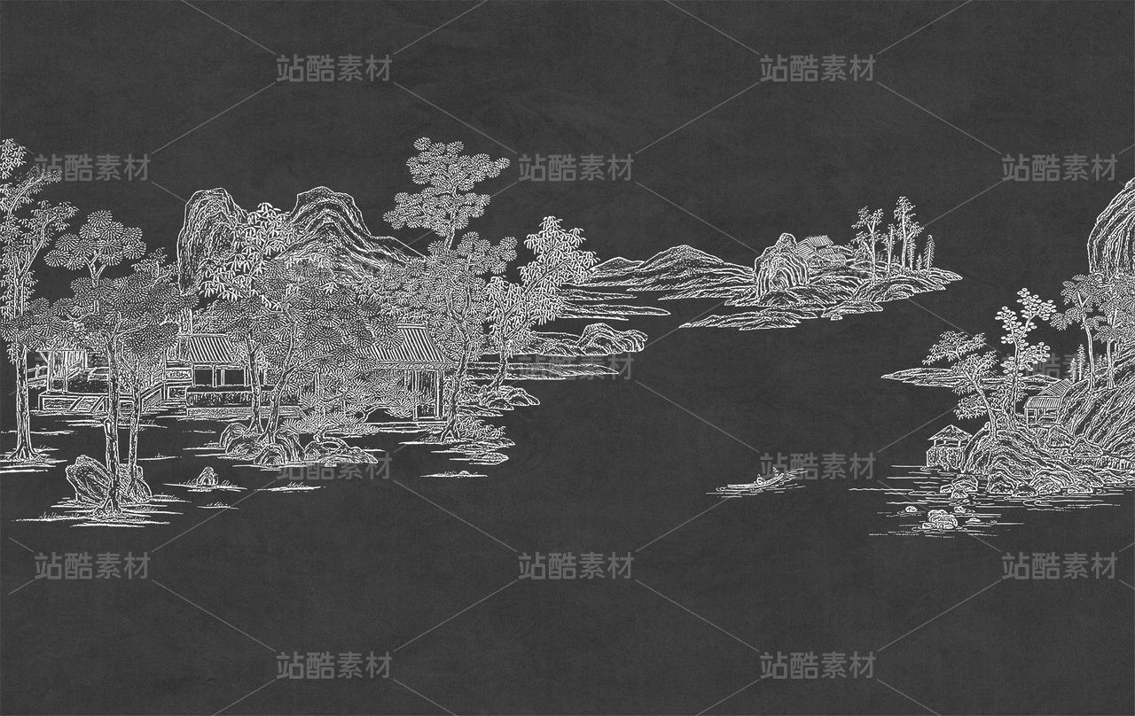新款高清新款深灰水泥亭台楼阁新中式山水工装背景墙05