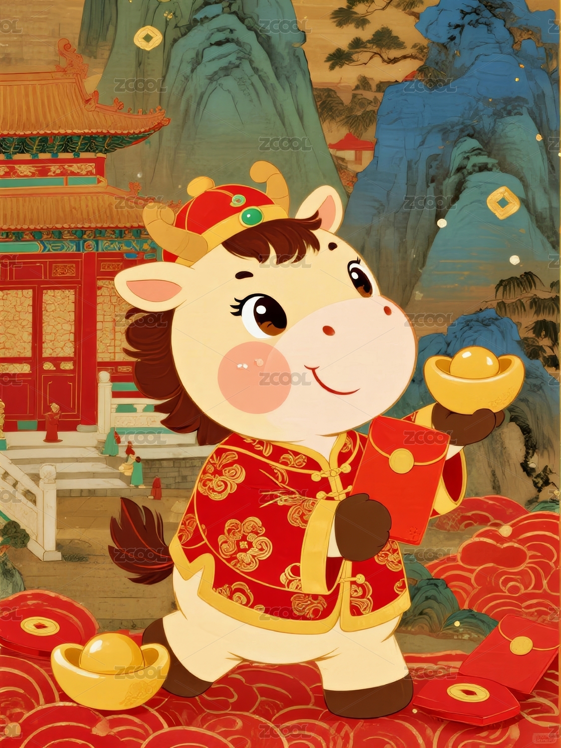 新年,庆祝,春节,马,生肖动物,午马,卡通,吉祥物,中国文化,节日