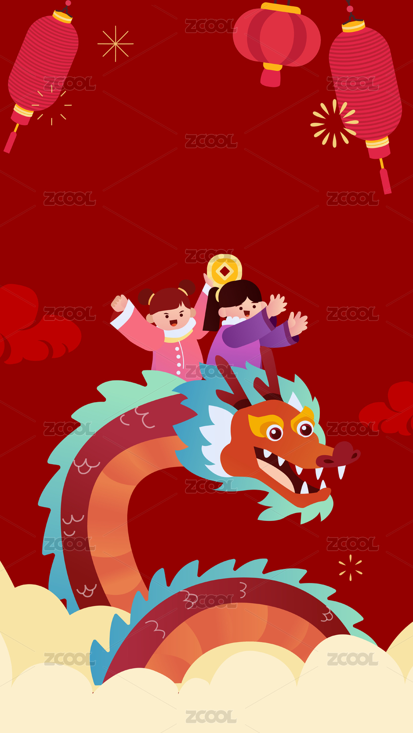 新春龙年过年人物传统喜庆矢量插画素材背景