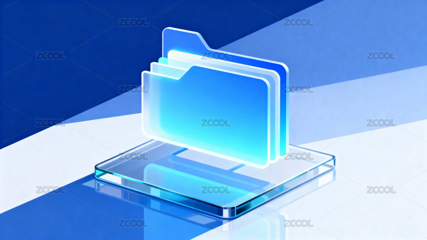 科技蓝毛玻璃办公档案文件夹智能概念图标