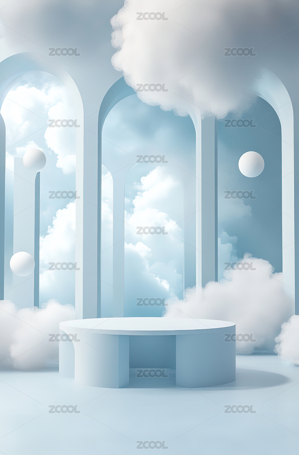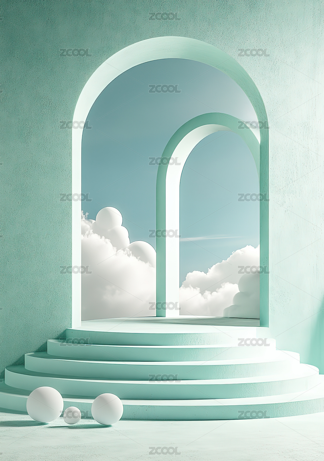 3D渲染,极简,艺术,梦幻,球体,现代,建筑,天空,白色,空间