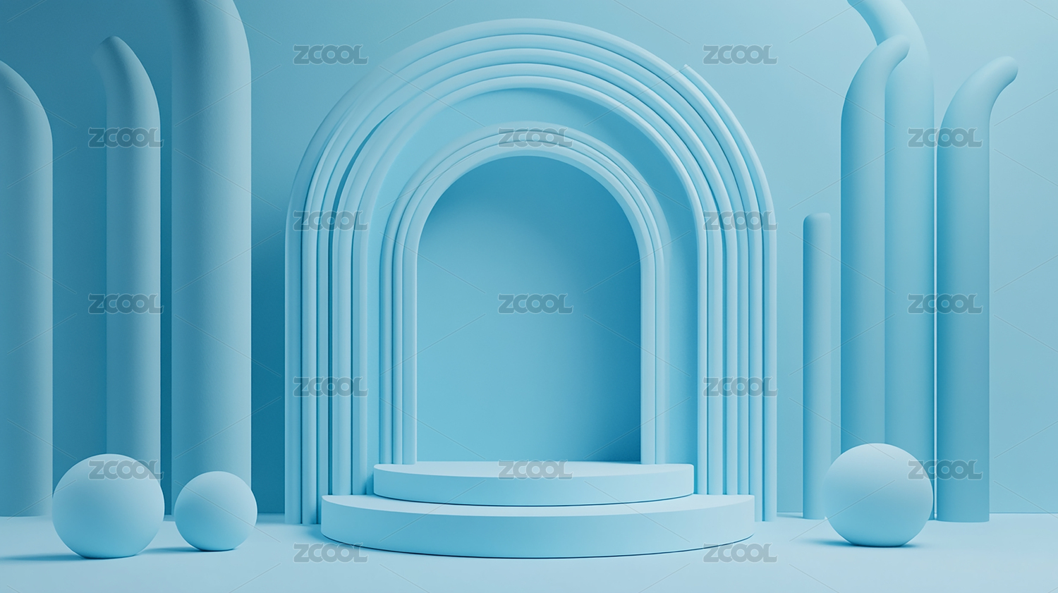 梦幻蓝色几何展台背景图