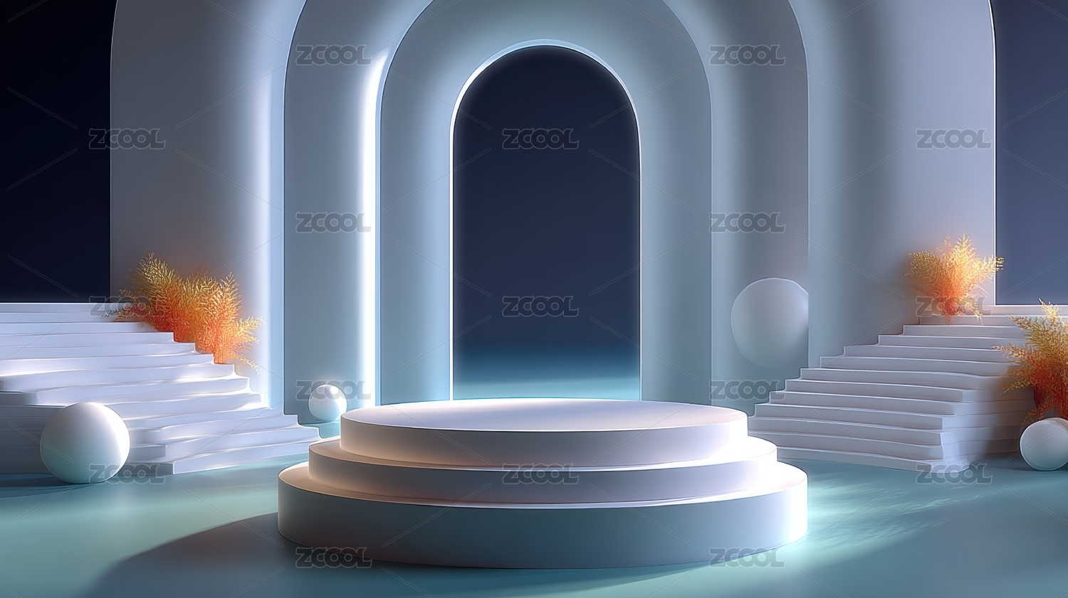 圆形,设计,3D渲染,极简,主义,艺术,现代,氛围,植物,空间感