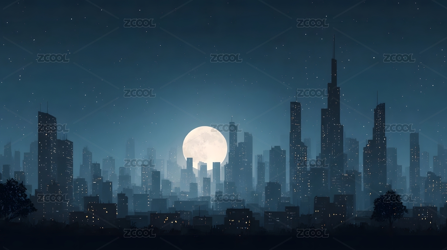 光影,现代,夜空,灯光,建筑,紫色,天空,天际,月亮,地平线