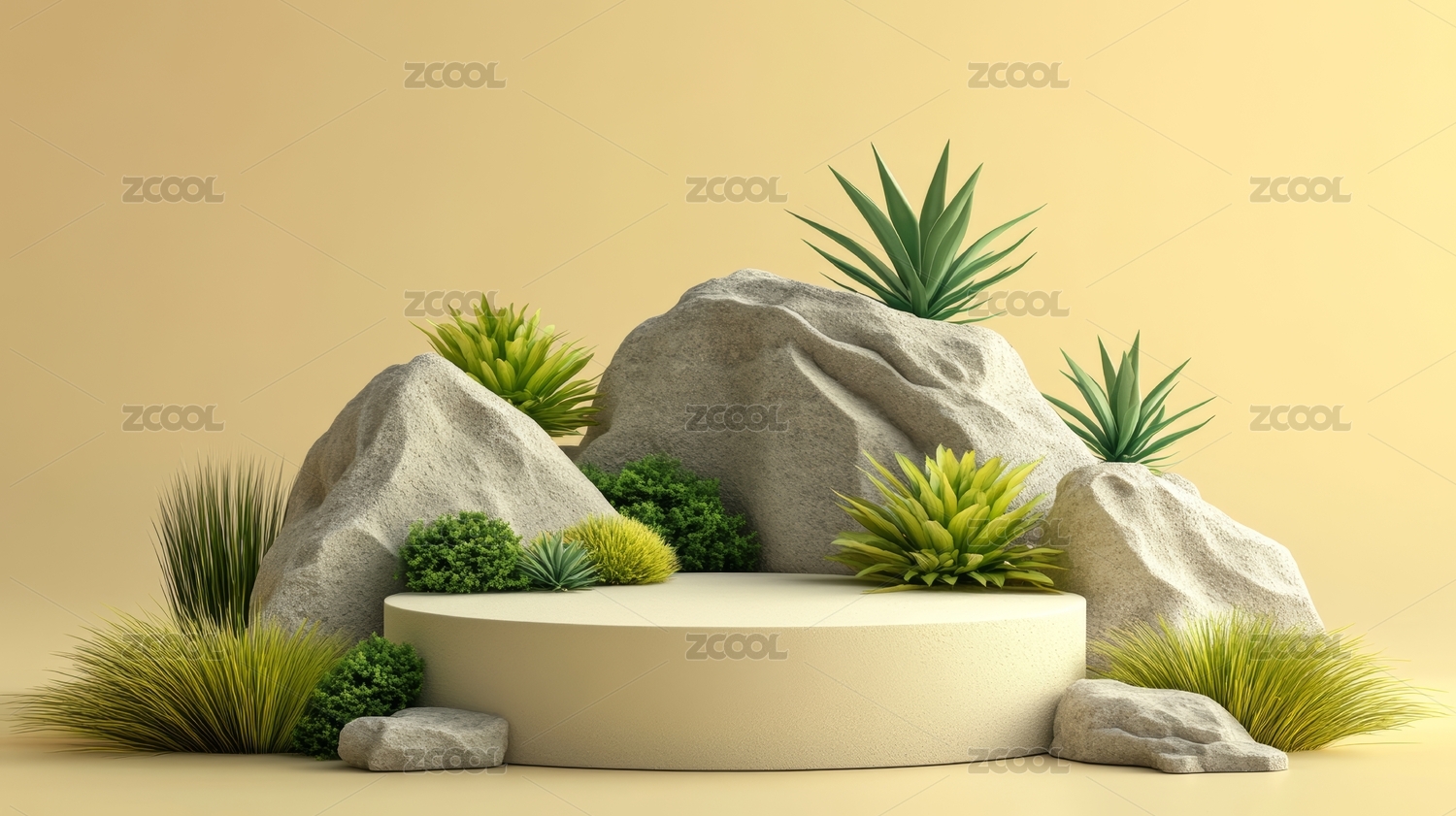 绿植石头自然展示场景