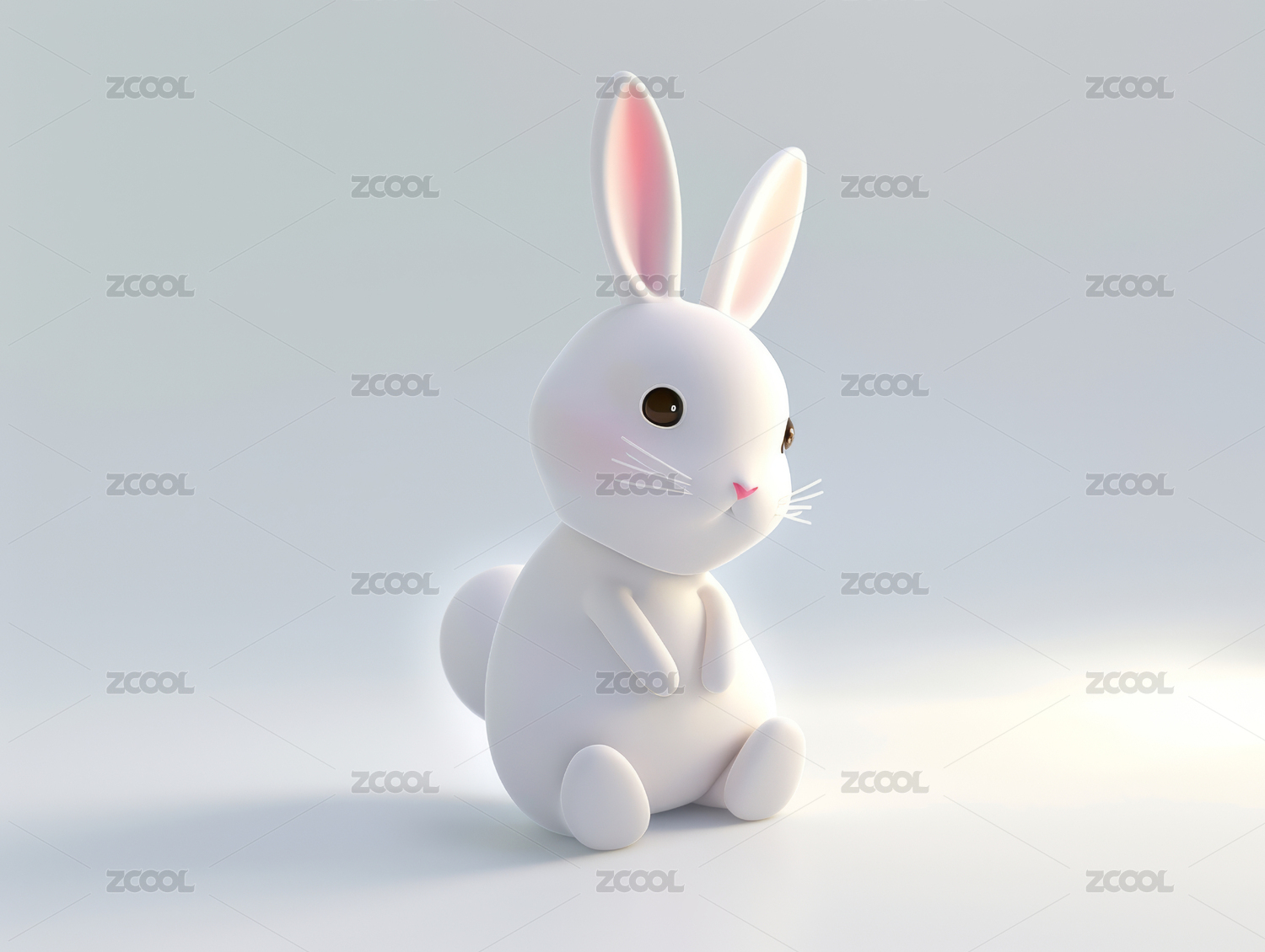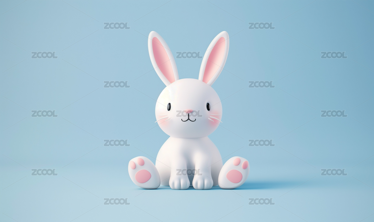 兔子,可爱,站立,蓝色,背景,卡通,白色,大眼睛,粉色,耳朵