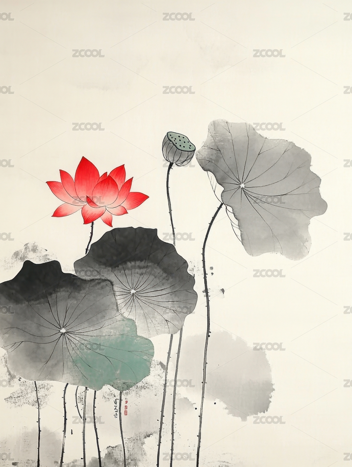 主视觉,商业,壁纸,荷花,水墨,国风,花卉,场景,花瓣,荷叶