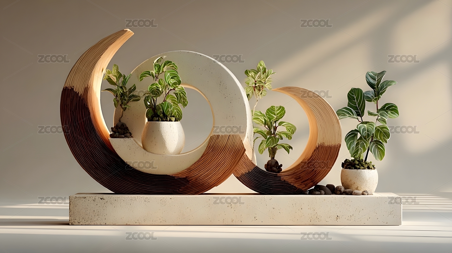 木质台面与绿植装饰