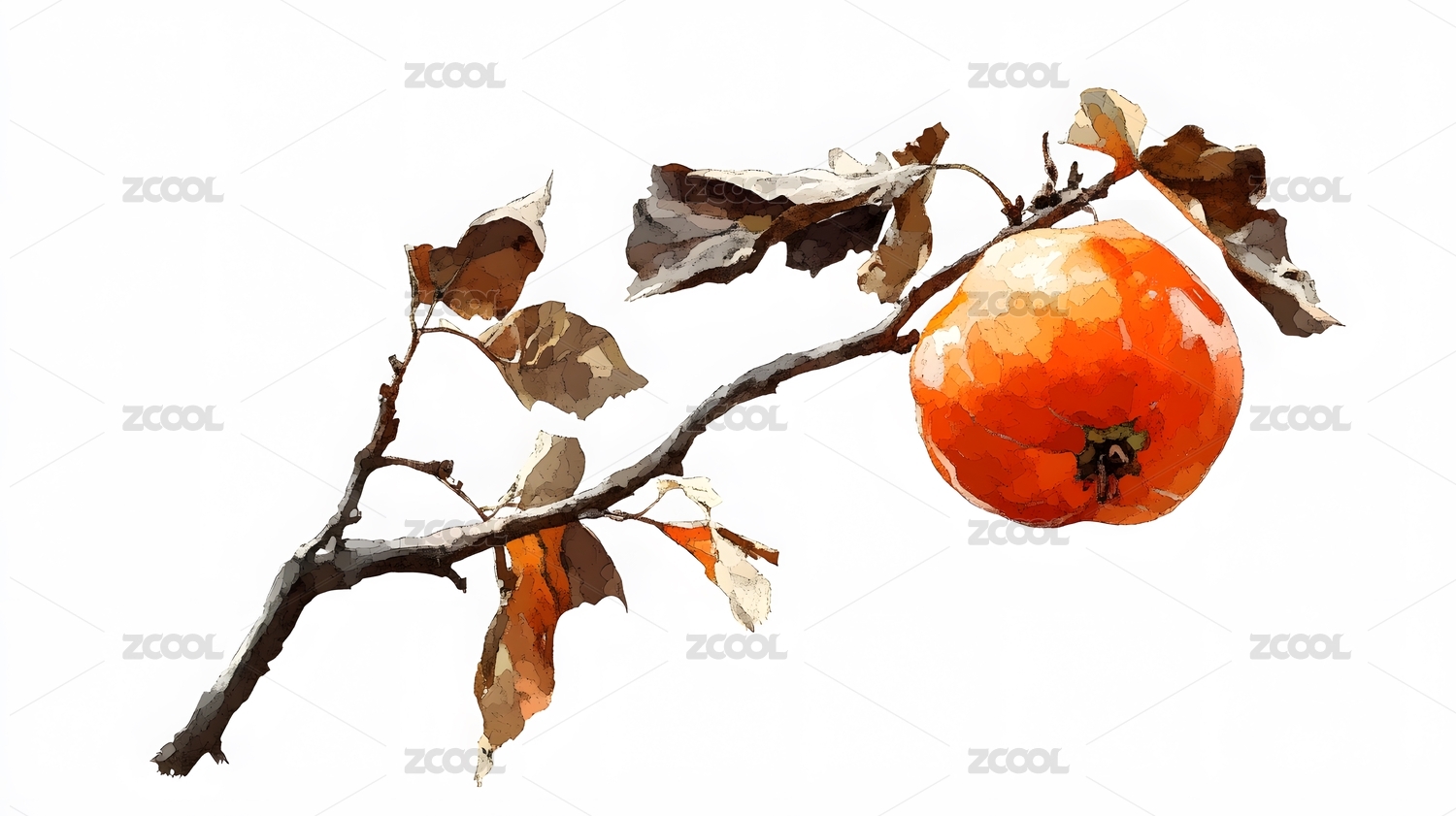 柿子,水果,写生,艺术,绘画,果实,树枝,食物,营养,健康