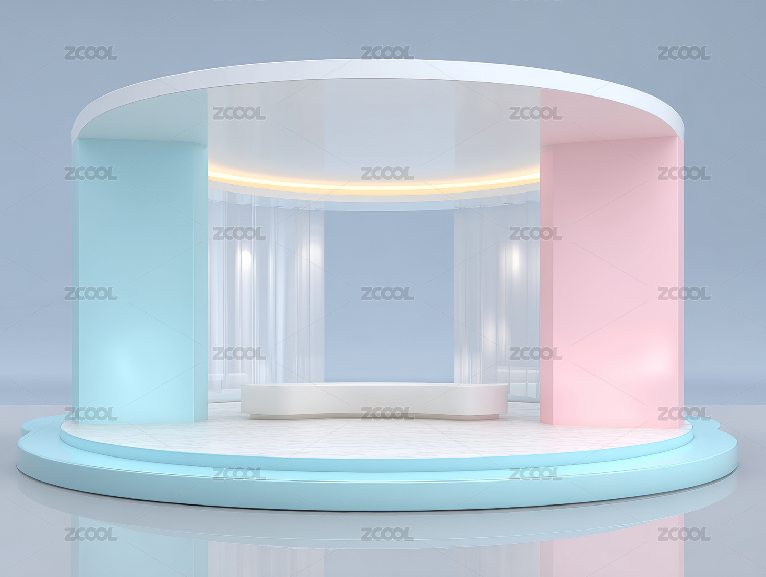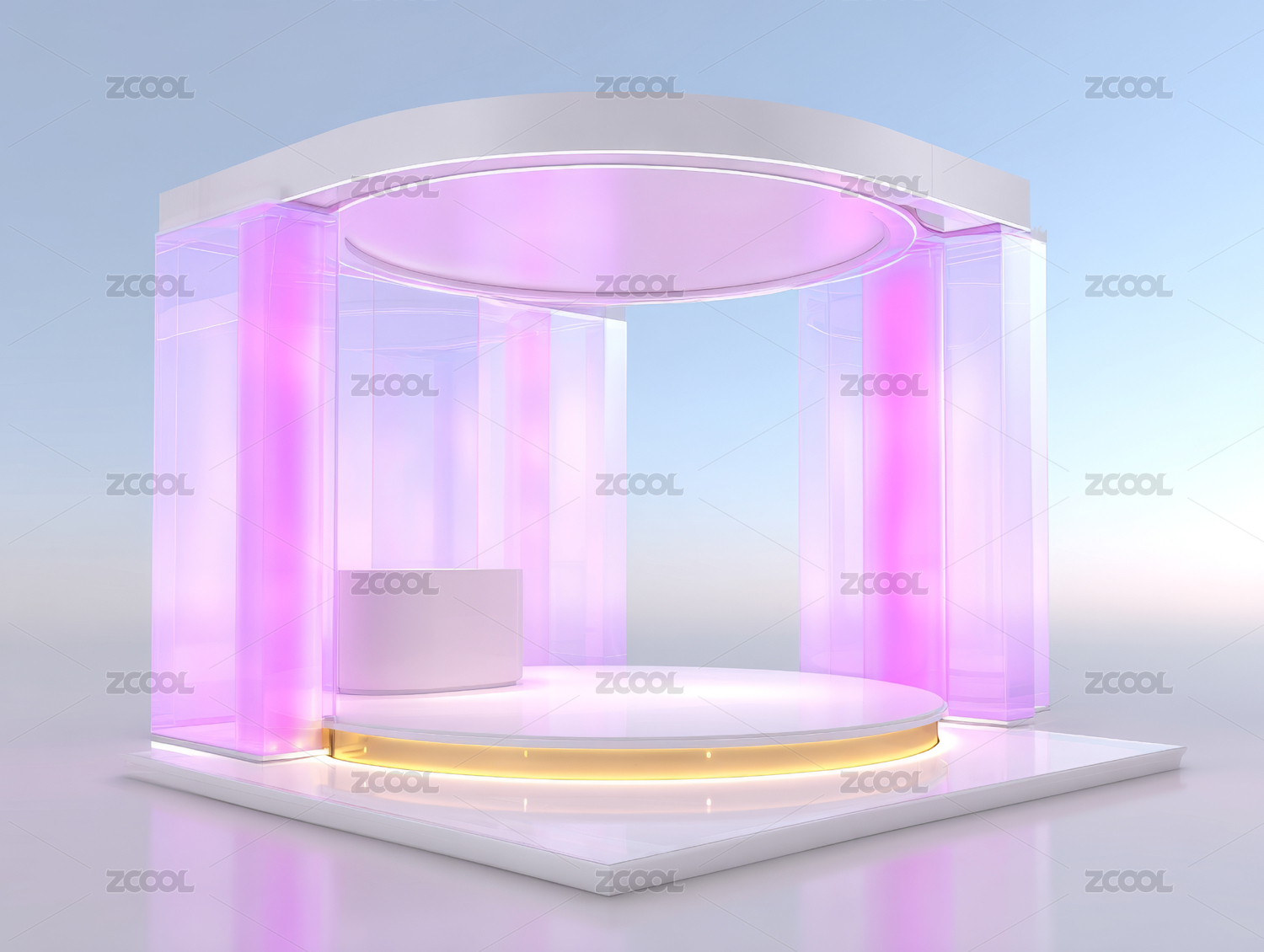 未来感,展示台,灯光,透明,玻璃,植物,圆形,科技感,简约,设计