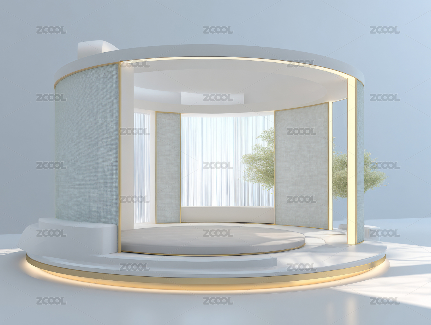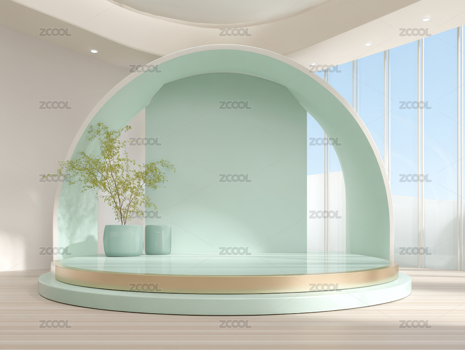 室内,舞台,现代,简约,植物,光线,设计,黄色,绿色,圆形