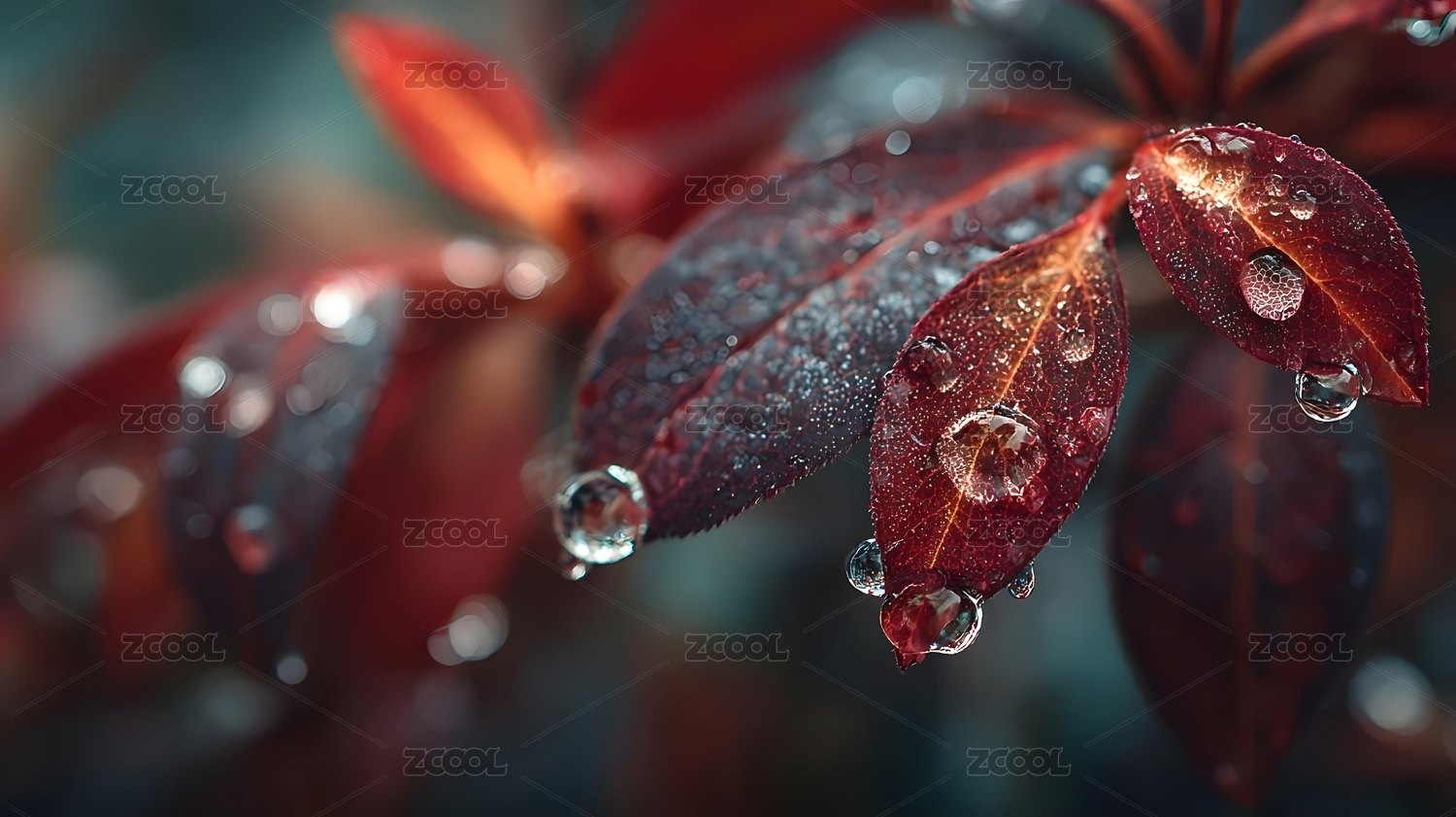 红叶水滴特写自然