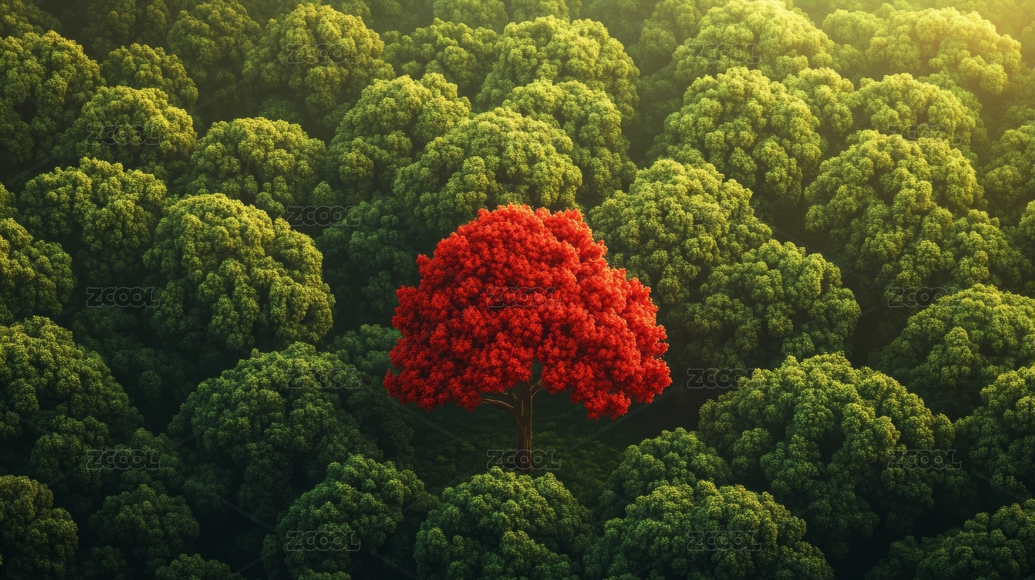 自然,树木,宁静,祥和,森林,绿色,红色,希望,植被,航拍