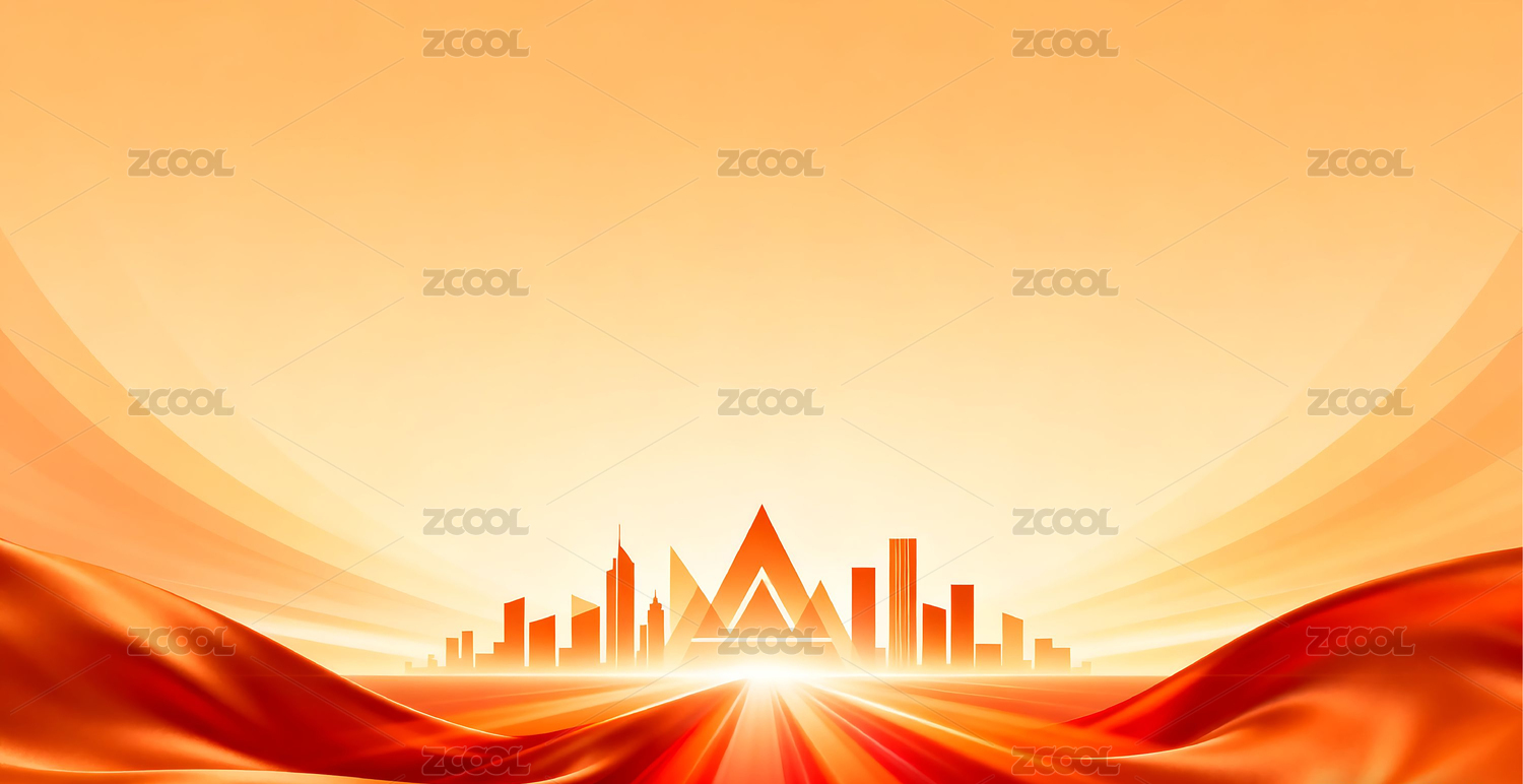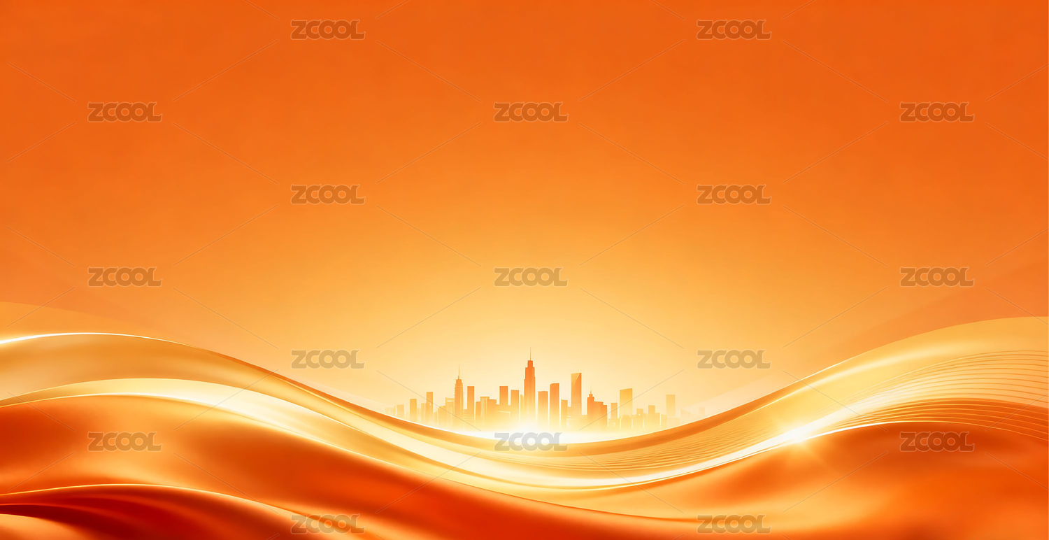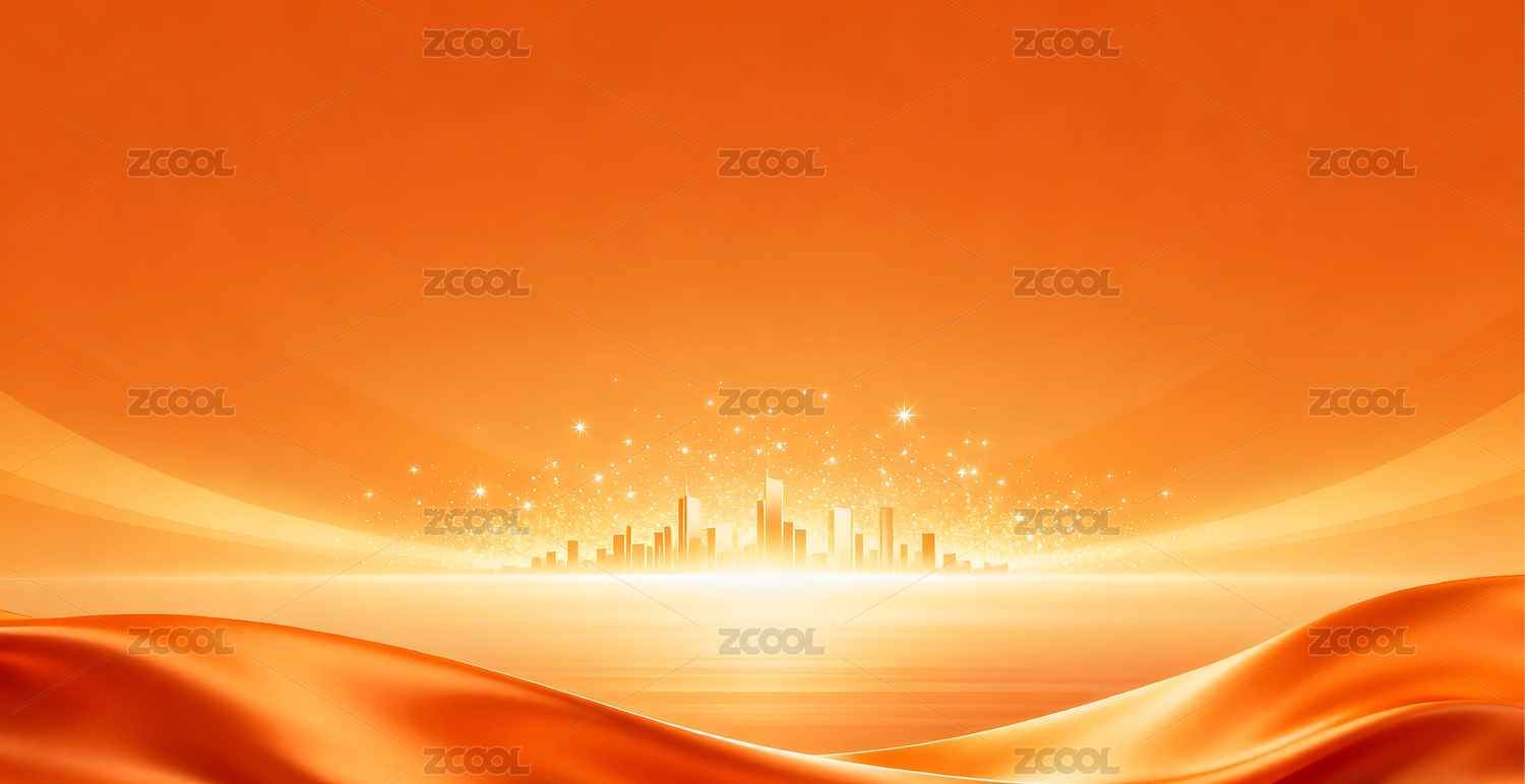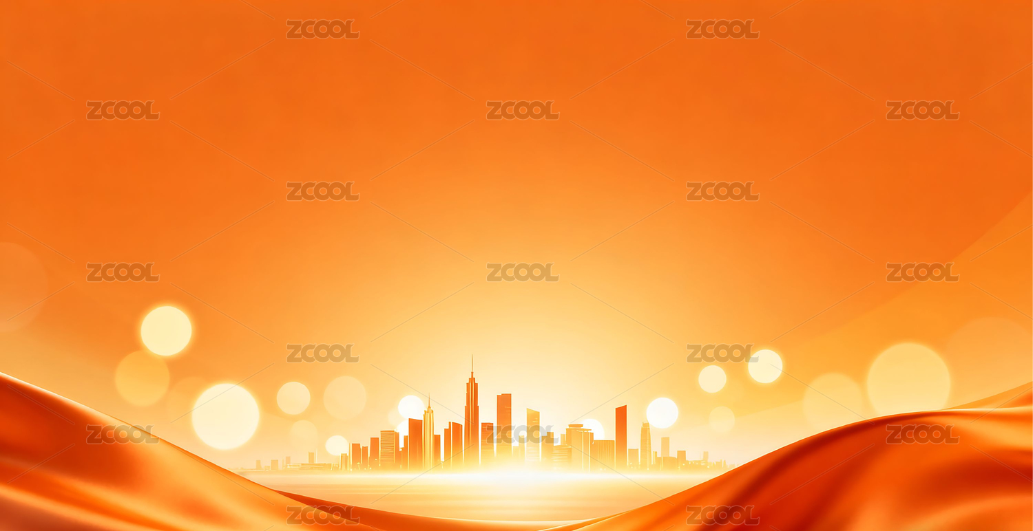 橙金色绸缎布料城市建筑天际线商务庆典背景