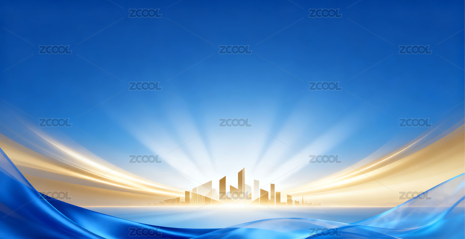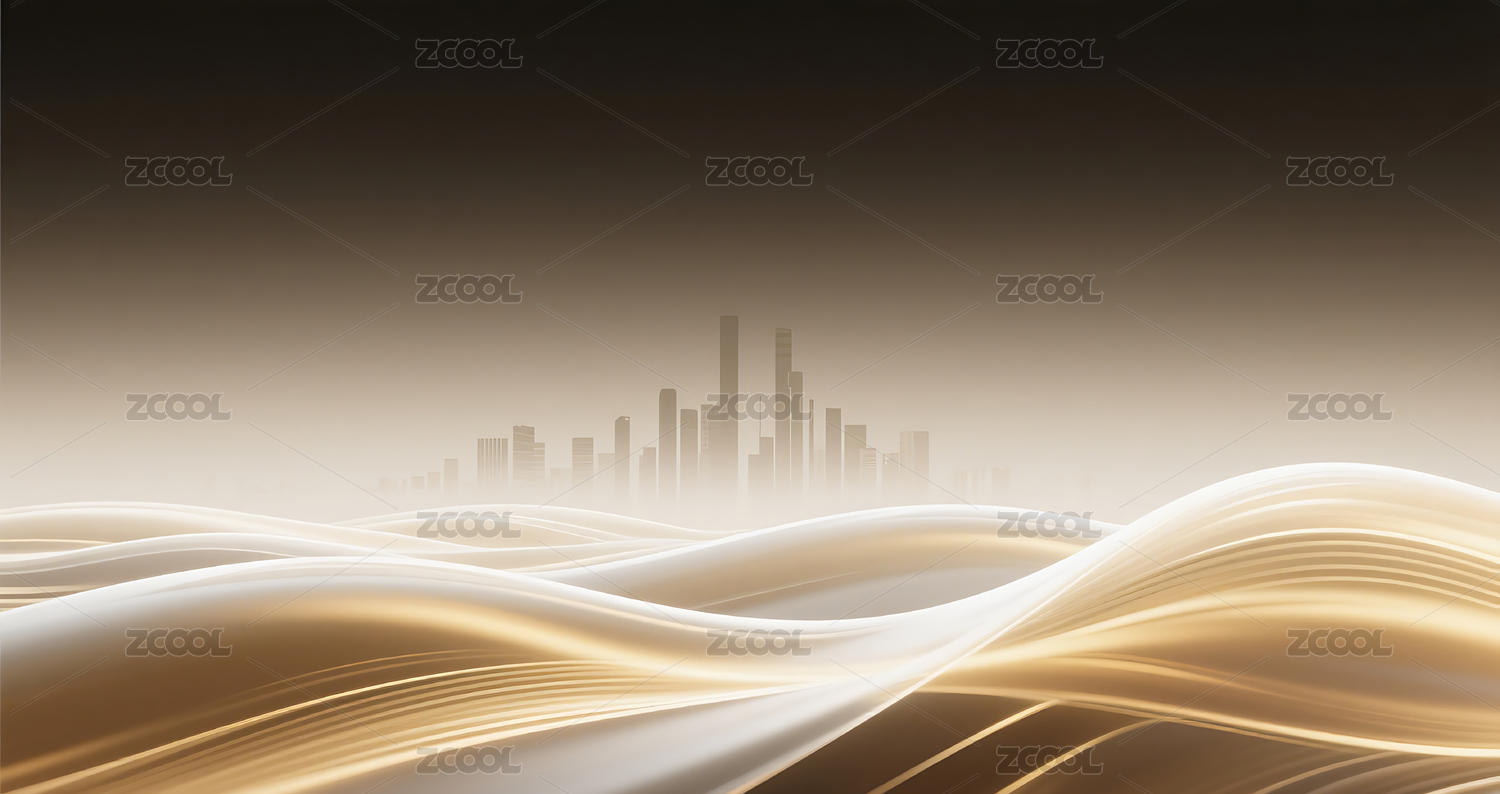 金色城市剪影与流动曲线背景