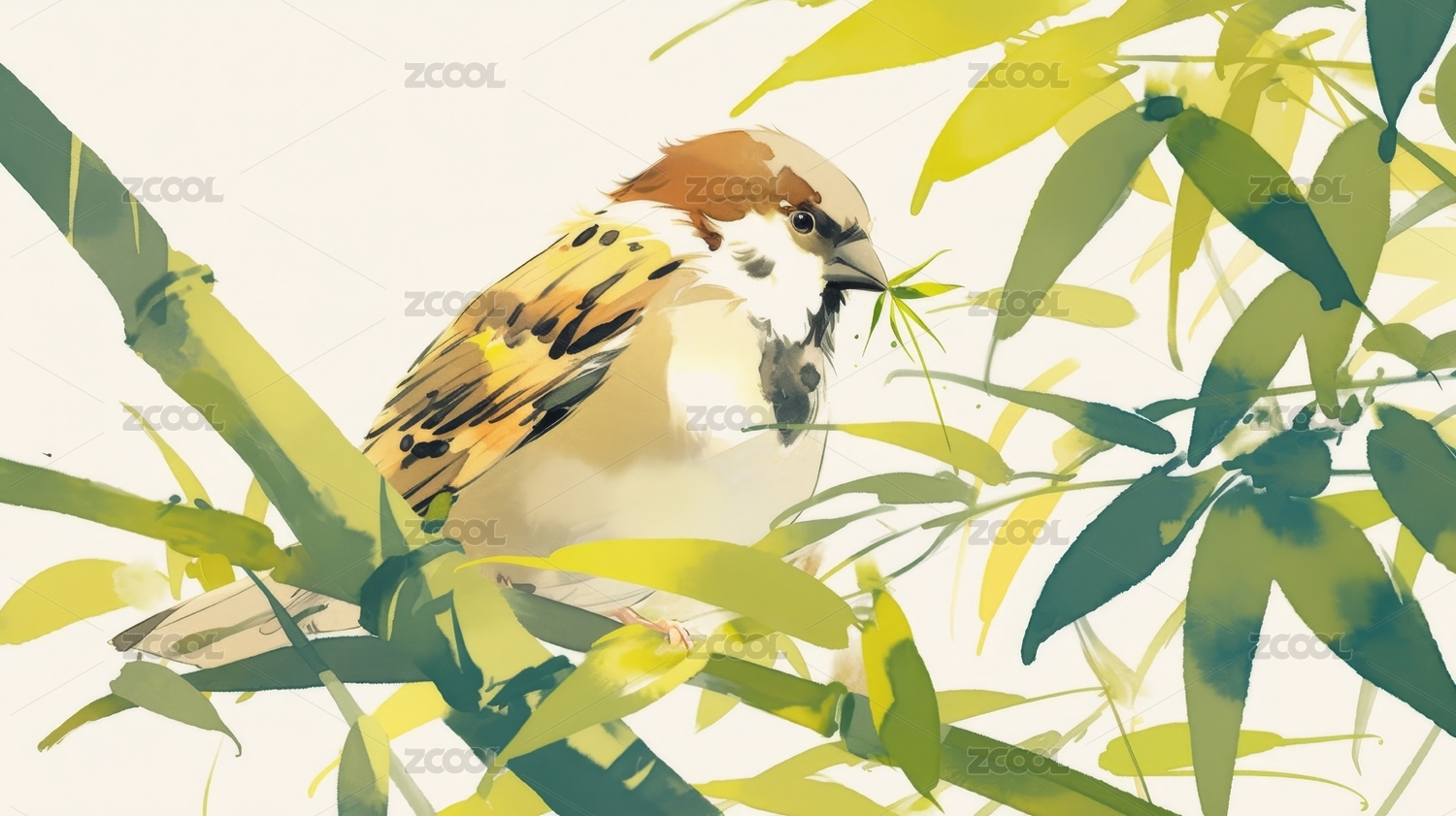 卡通版画单色鹦鹉装饰T恤LOGO图案插画